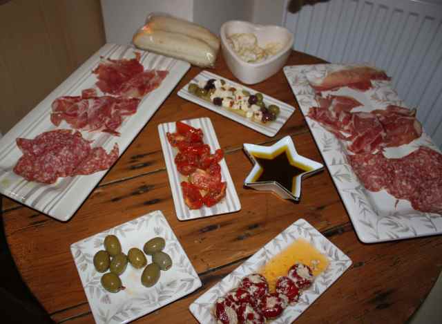 Platters of Italian meats to nibble on while everyone was arriving and having the first drinks,