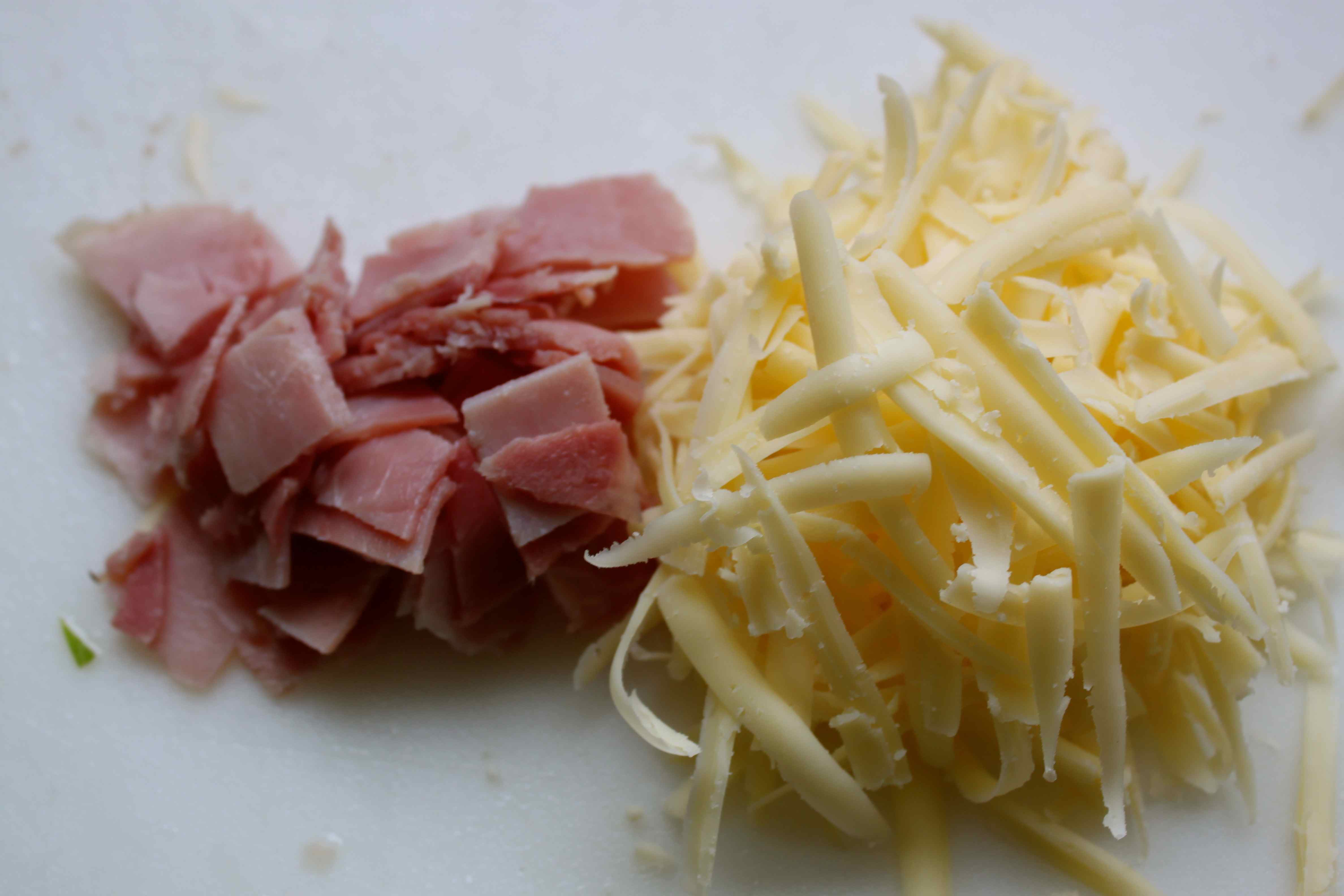 Ham + about 50 g cheddar + 2 eggs = omelette.