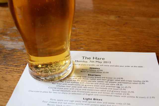 We went out for a pub lunch. It was a spontaneous decision and we went to The Hare in Langton Green. I enjoyed a chilled pint of lager while I read the menu.