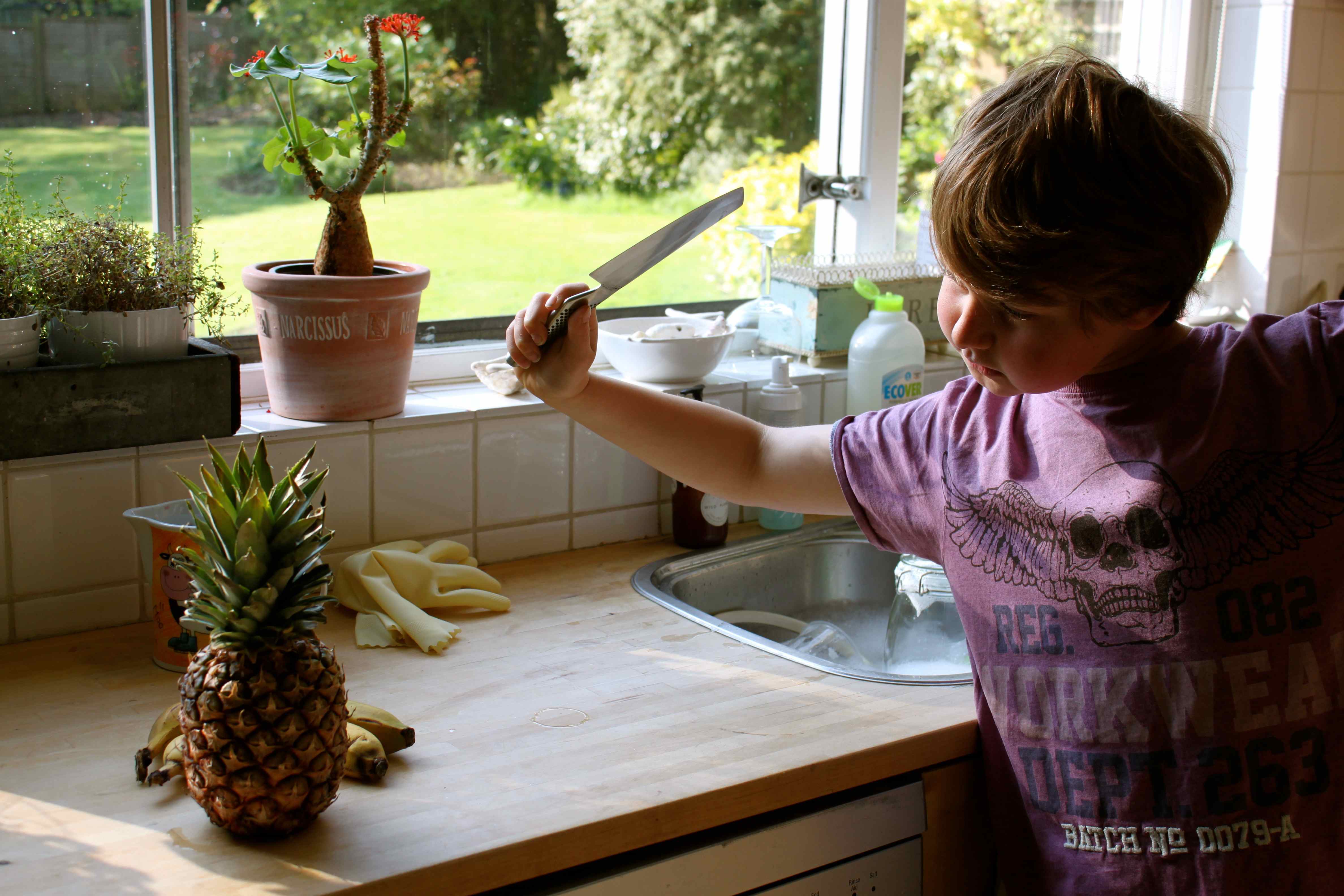 Next on the menu today was a banana and pineapple smoothie which Harvey helped me prepare.