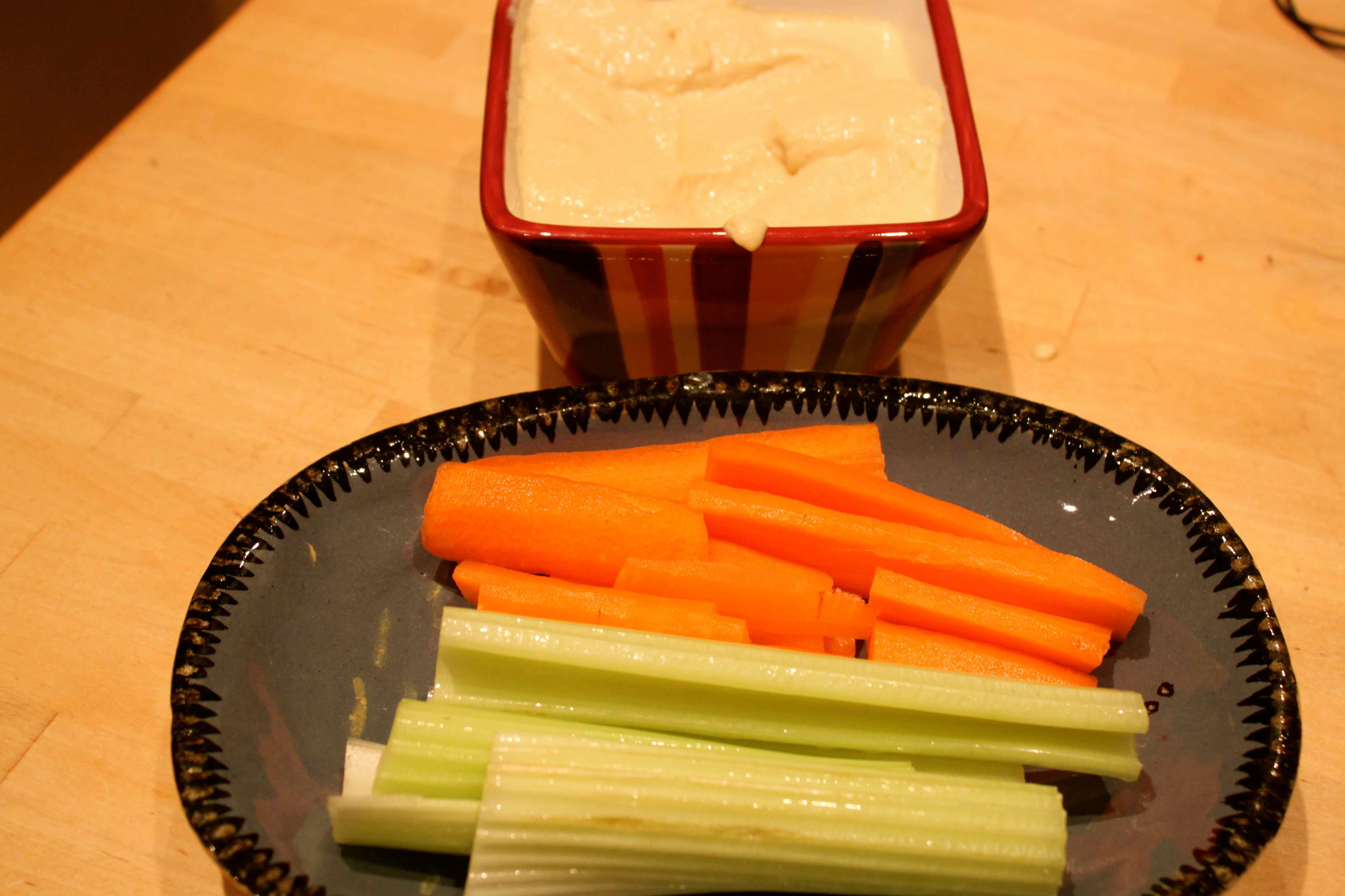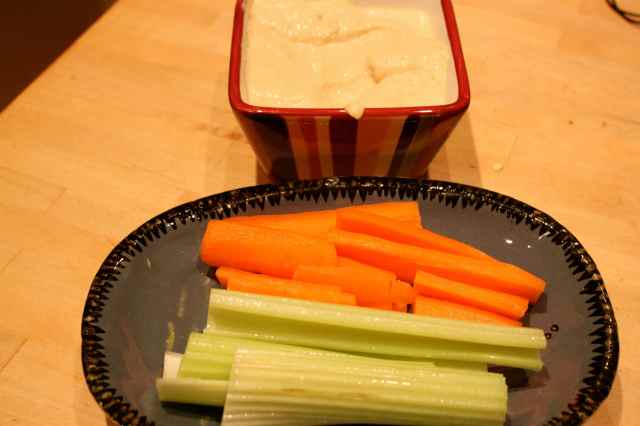 To serve you can add olive oil (not necessary) and paprika or za’tar. I added neither and ate mine with celery and carrots. It was delicious.