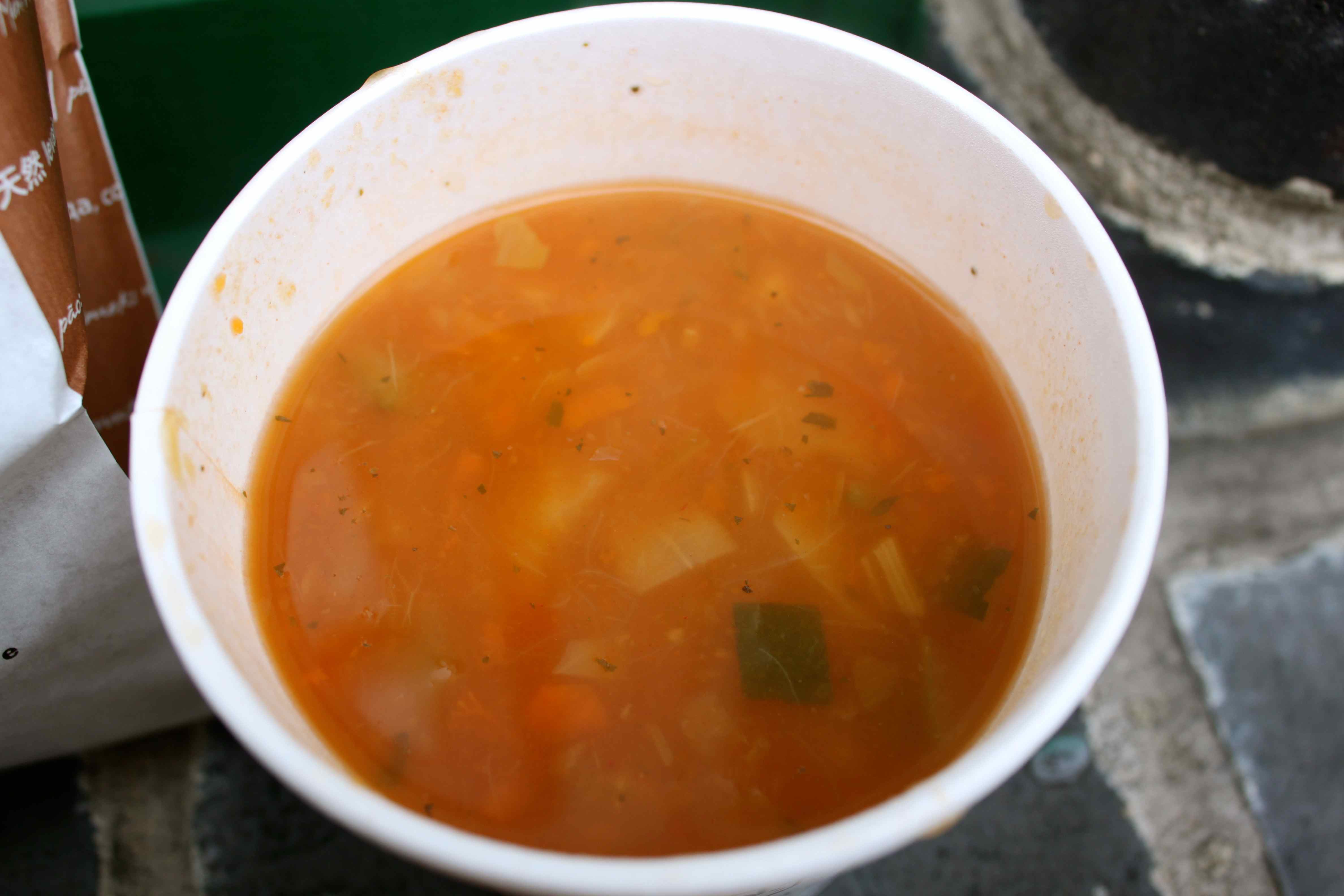 It came with some bread which I ate. The soup was a little bland for me but full of vegetables so it was a healthy lunch, apart from the bread.