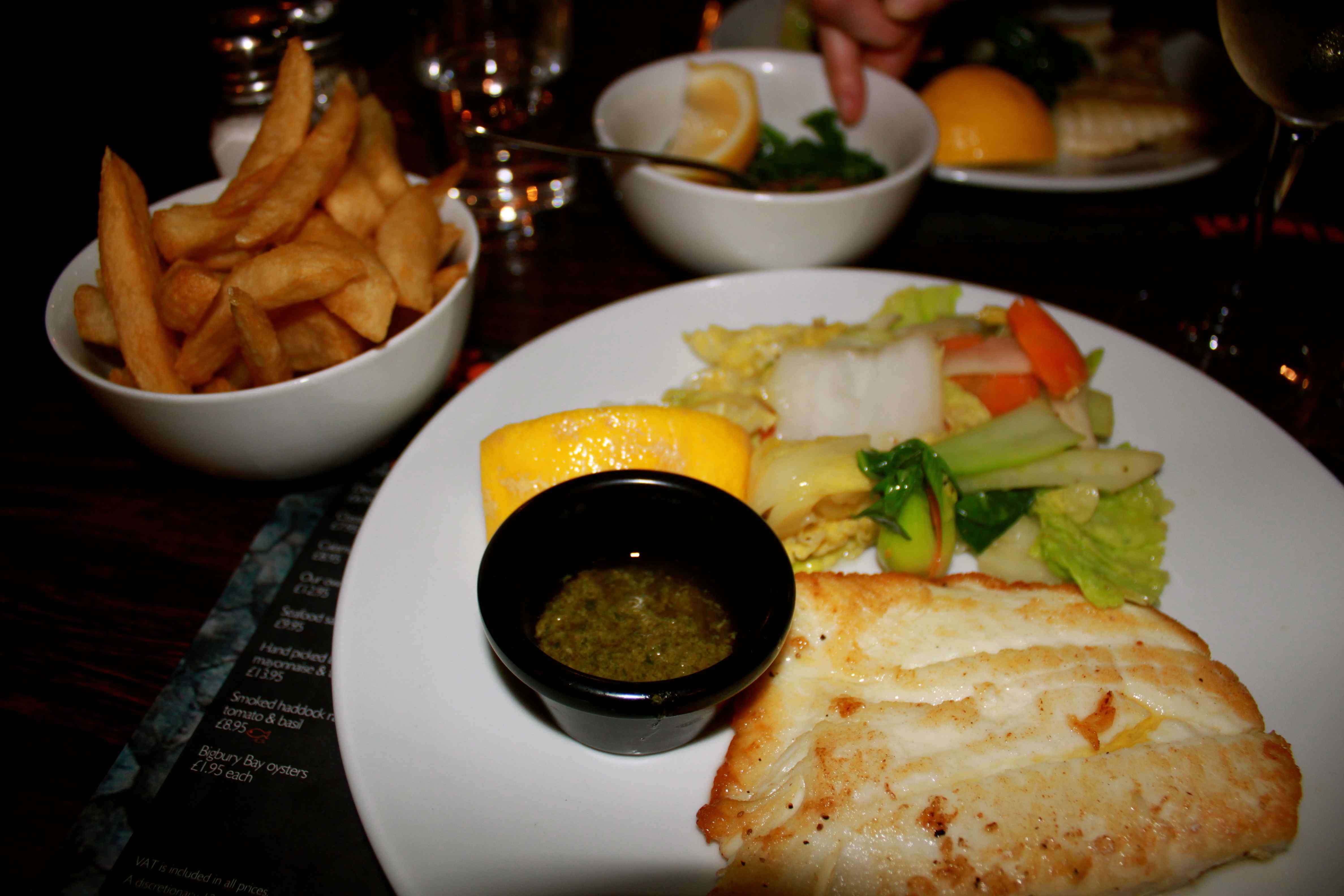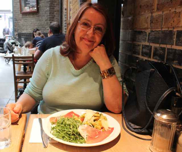 When it became cold and windy we wandered over the river to Borough Market and in to Fish! for supper. I had halibut with salsa verde, vegetables and chips which was delicious.