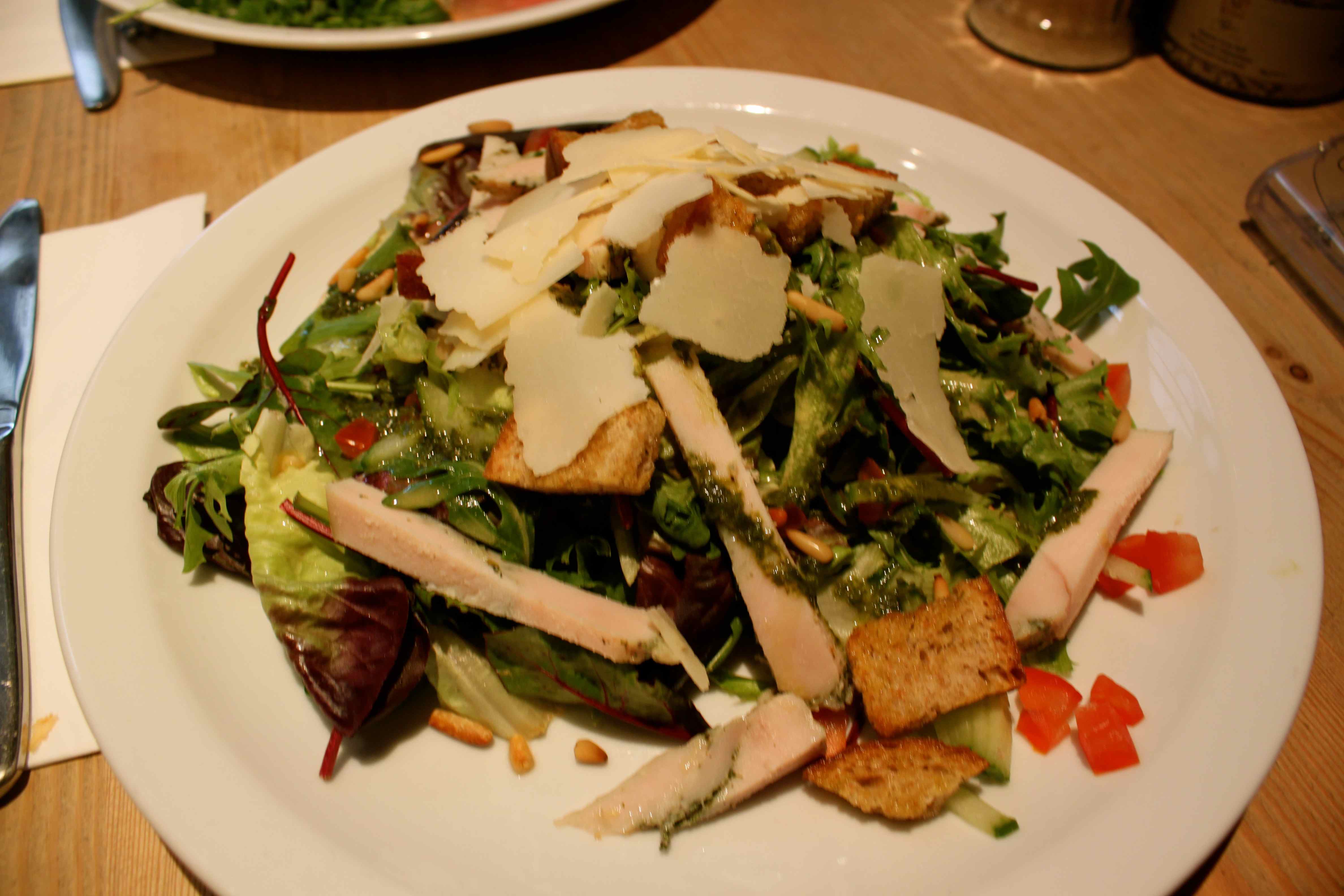 We went to Le Pain Quotidien, which I have had takeaways from before but never eaten inside and it is a lovely building with a calm and quiet but busy ambience – perfect for lunch. I had a smoked chicken salad