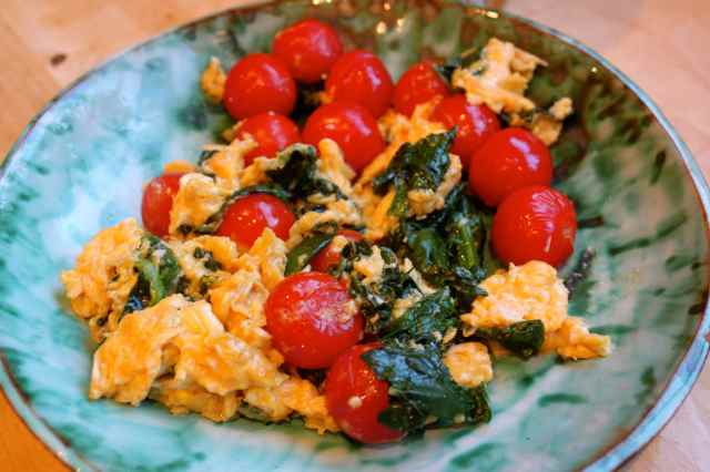 So back at the ranch I made something healthier for supper with tomatoes, chard, spinach and plenty of black pepper