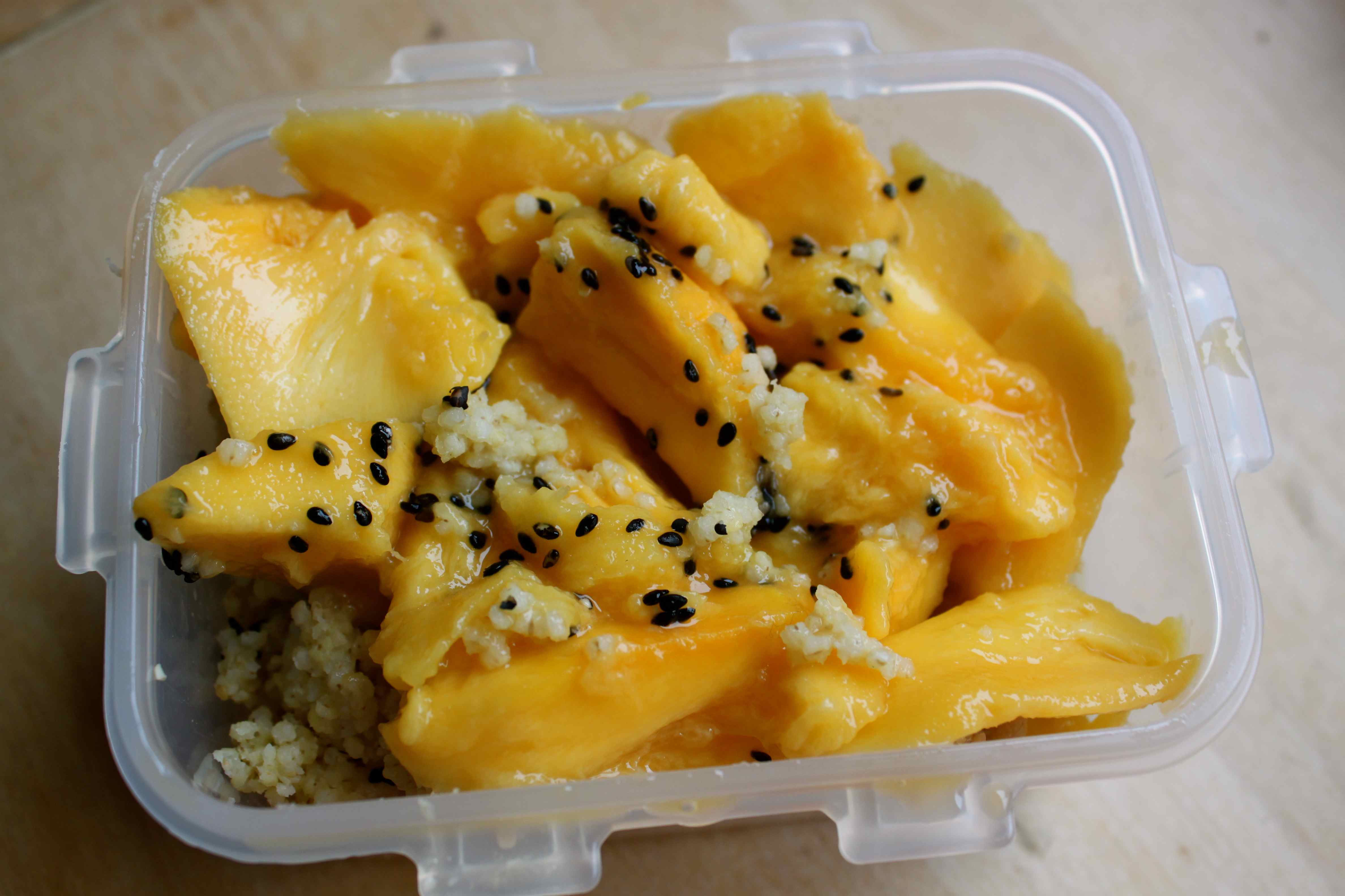 I bought some in Chinatown yesterday and cooked it as per instructions last night. Tropical fruits are not macrobiotic apparently, unless you live in the tropics, which we don’t. But this lovely mango was sweet,juicy, ripe perfection so I chopped it up and added it to the breakfast pot.