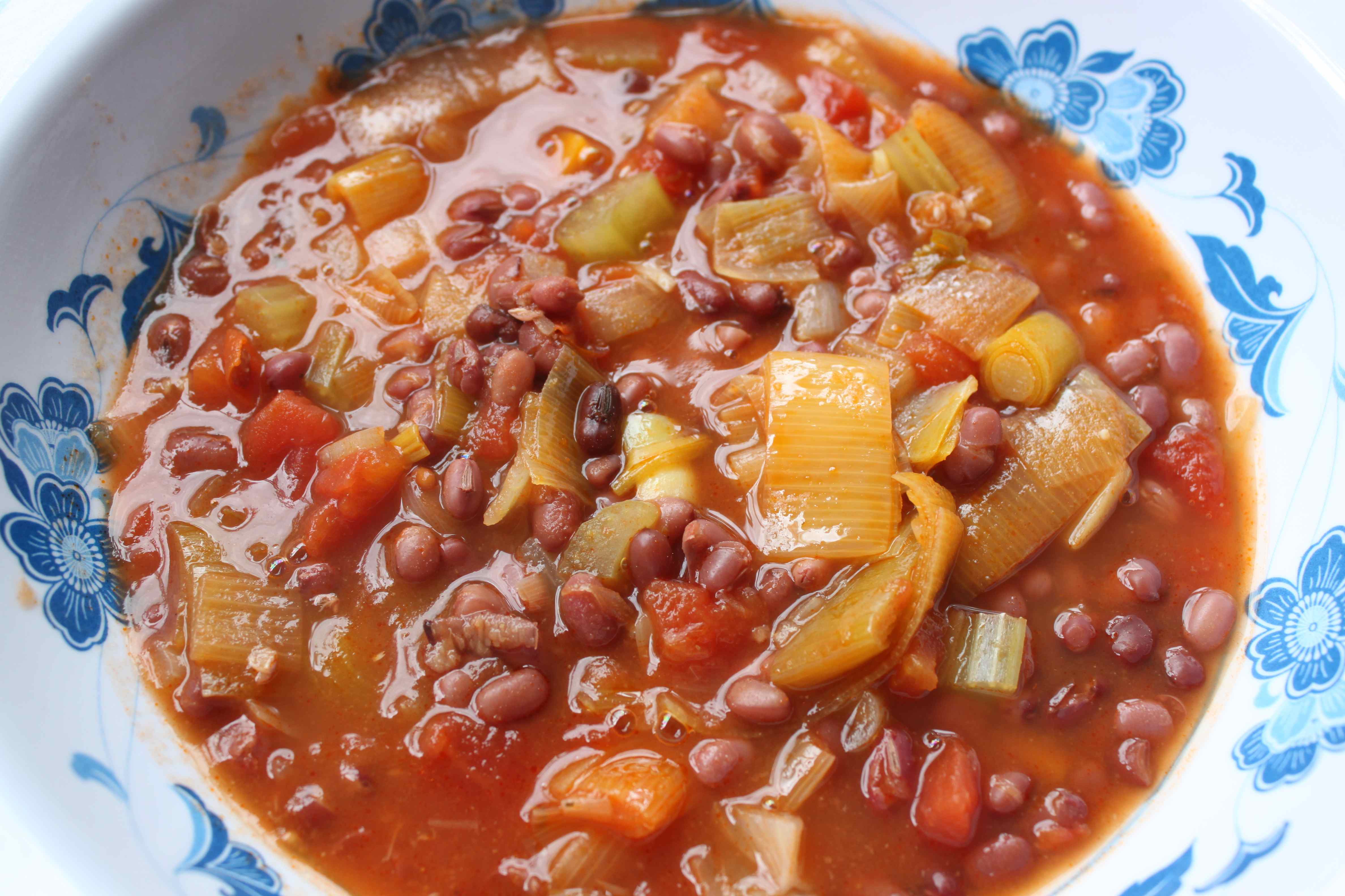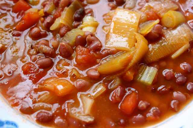 If you don’t have a slow cooker, heat the oil and fry the onion, garlic and cumin in a large saucepan. Add the stock, tomatoes and puree. Add the beans, bring to the boil, cover and simmer gently for about an hour. Add the leeks, celery and carrots and cook another 20-30 minutes. Season to taste and stir in the herbs.