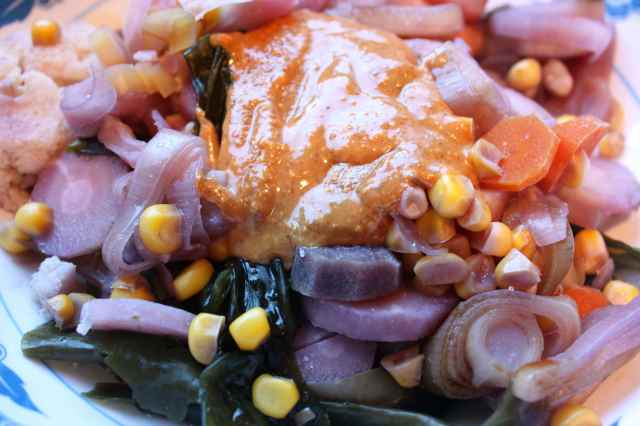 I added some almond butter to provide protein and fat which was delicious. The vegetables tasted OK. Not very exciting but alright and certainly healing.
