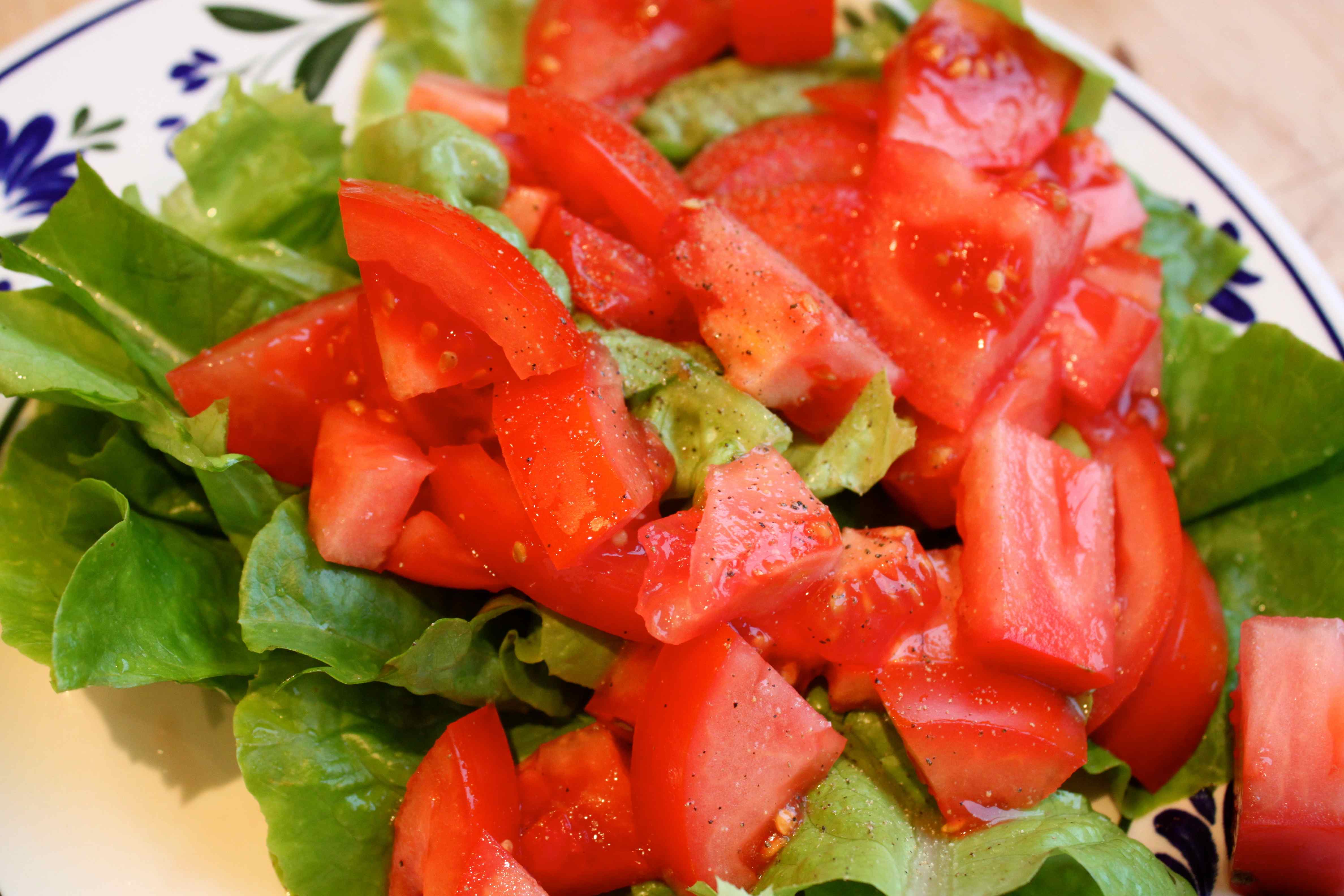 With a large sweet and juicy beefsteak tomato, salt and pepper.