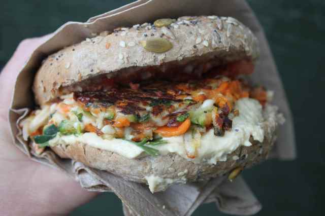 Heavenly Halloumi Veggie Burger with hummus. Yumelicious.