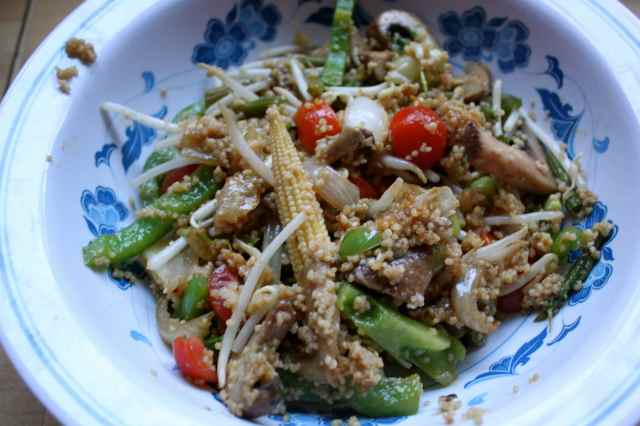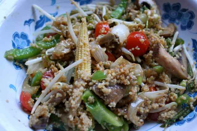 For supper I made a stir fry using up the last of the picnic couscous and loads of fresh veggies.