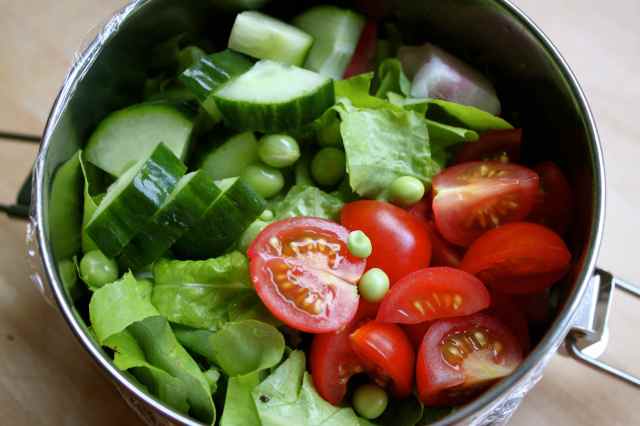 I had also taken in a salad of lettuce, radish and peas from the garden plus cucumber and cherry tomatoes, in a silver dish.