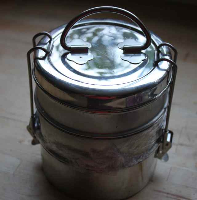 This is the type found in India and I bought it from Indian Tiffin. Having enjoyed using my tiffins at the school picnic recently, I decided it would be nicer to take my lunches and breakfasts to work in a tiffin than tupperware boxes. I have never bought anything from this company before but they were very efficient and I was impressed.
