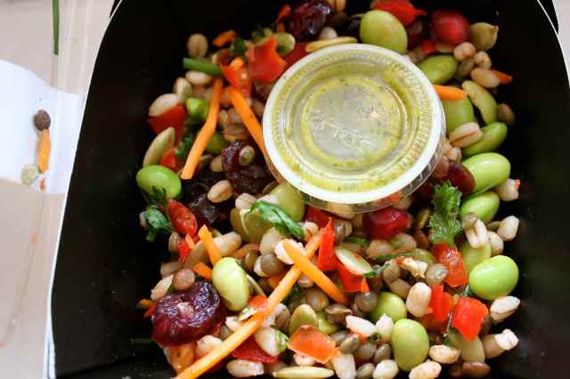 For lunch I tried EAT’s chicken and noodle soup which was good but it comes in a huge bucket sized container which is too much. On the side I had this delicious salad which had pumpkin seeds, lentils endgame beans, carrots, red peppers, pearl barley, dried cranberries and fresh herbs.