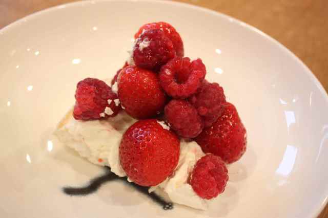Helen made a pavlova with strawberries and raspberries.