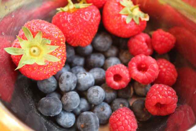 By the evening I was feeling tired and fluey so went for a smoothie full of vitamins. I started with strawberries, raspberries and blueberries,