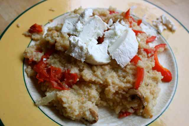 Lara made lunch for us and before that we took the dogs on a walk.  So I had a healthy lunch break today, walking in the woods opposite and then came home to couscous with roasted vegetables and 50 g Chèvre Blanc (goat’s cheese).