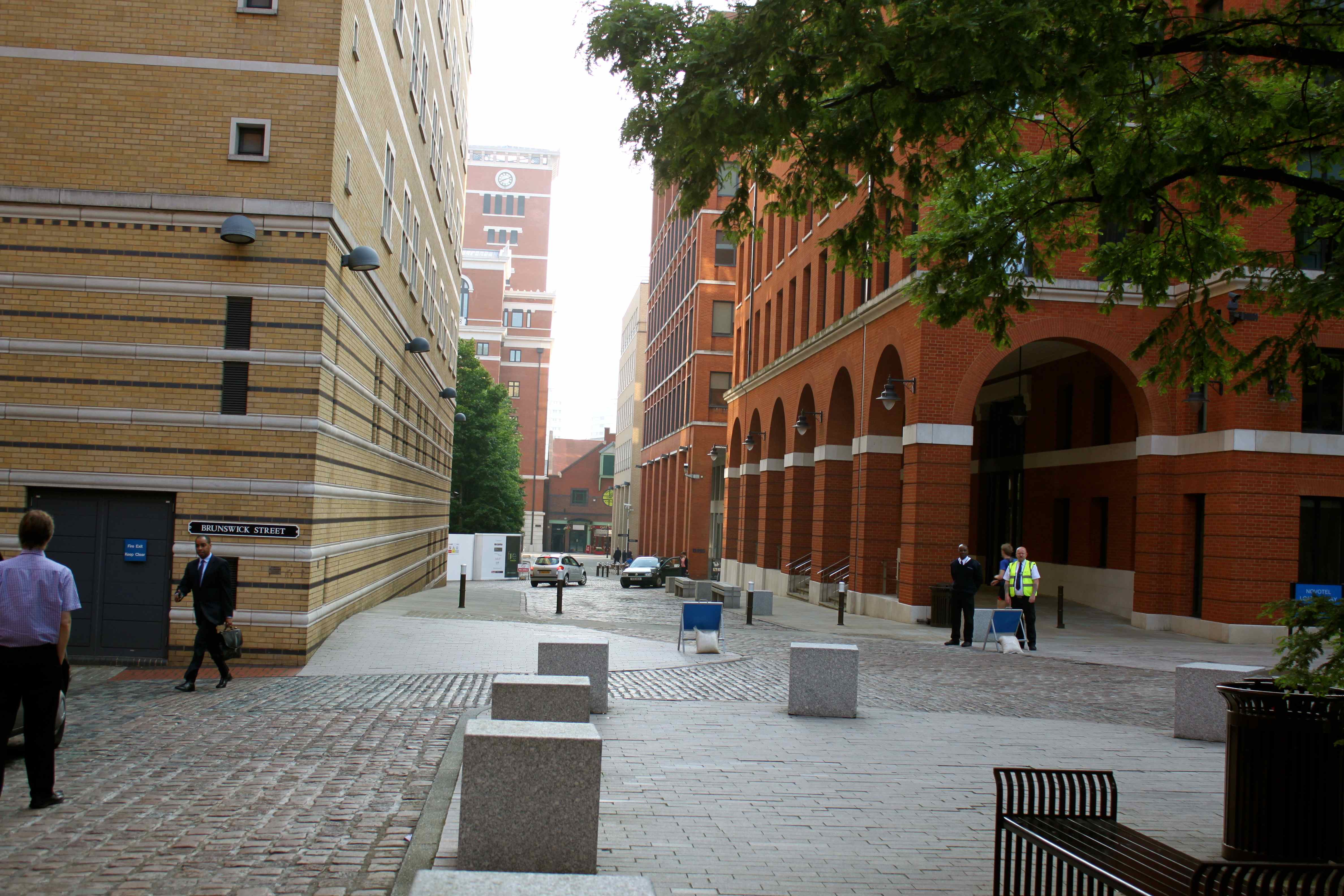 This is my commute. From the front door of the hotel, where I am standing to take this photo, to the building at the far end on the right. No complaints about that!