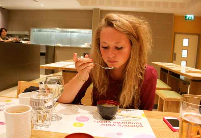 I had miso soup (Lara was posion tester), edamame beans,