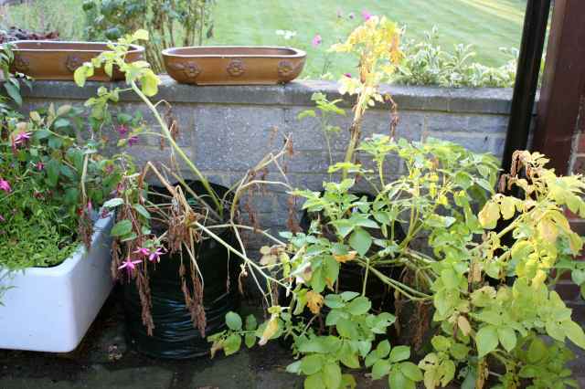 In 2 large sacks on the patio, I have been growing some potatoes and tonight I harvested my first crop. Look how perfect they are !