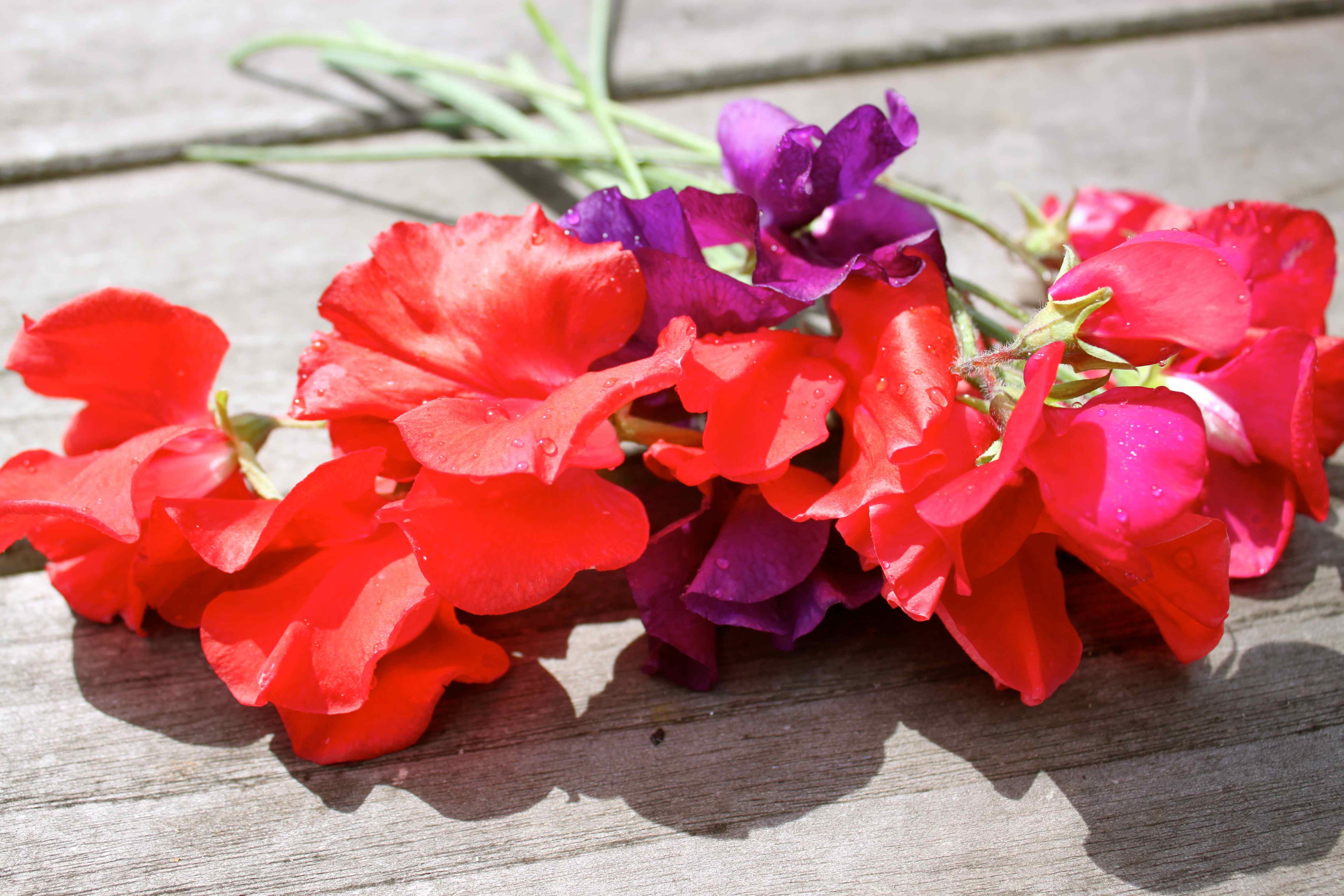 We have a good routine going on a work from home day. I tell the kids when I am on a call and they know to be quiet or go out and give me some space. When the dining room door is shut, Mummy is not to be disturbed. They both had friends over today so when I needed to stretch my legs and have a break, I popped in to the garden instead of having a quick chat with them. I picked these pretty sweet peas.