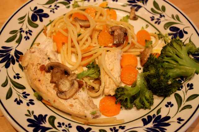 I had a late lunch today of a chicken soup and a ham sandwich from Pret. No time for a photo – yes, I am back in London. Back to rushed and late lunches. It was even better to get home tonight though. Back to my lovely family and my gorgeous daughter who had cooked a wonderful dinner. Chicken with steamed veg and a small amount of spaghetti. It was all very garlicky so I will stink tomorrow. This was our first dinner with my home grown garlic :-). It was really good. So much better than Supermarket garlic.