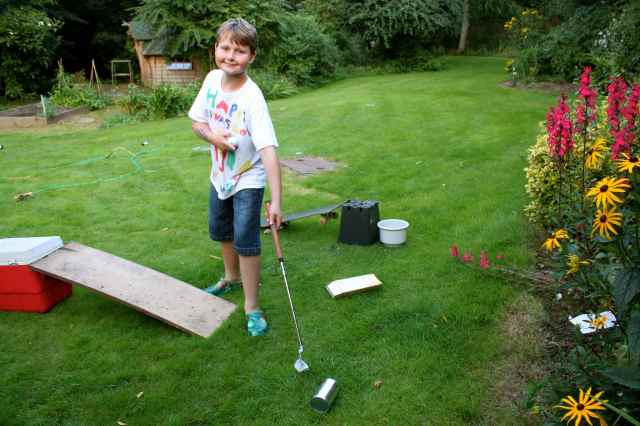 I wondered what the junk was doing in the garden. But on closer inspection it was a crazy golf course, as demonstrated here by perfect son.