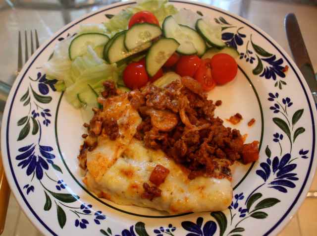 I came home to a home made lasagne, served with a glass of wine and salad.
