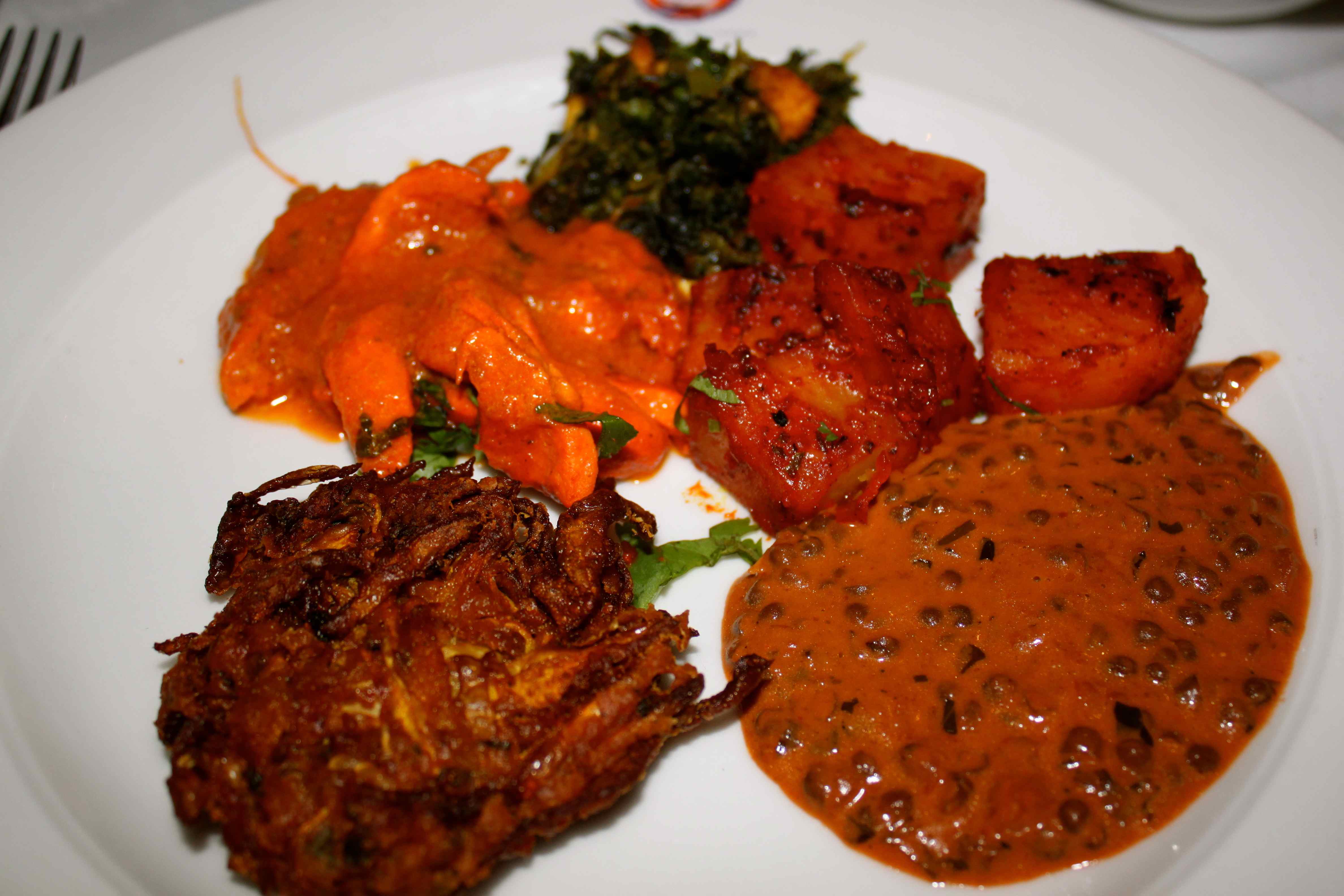 The Bengal Clipper may not have served the best curry ever but it was good.  The location was fabulous and the interior of the restaurant was very comfortable and we enjoyed the pianist tinkling the ivories during dinner.  I had a spicy fish tikka to start with, followed by a chicken curry, sag panner, dal makhani, Bombay poatoes and onion bahji.  Yummy.