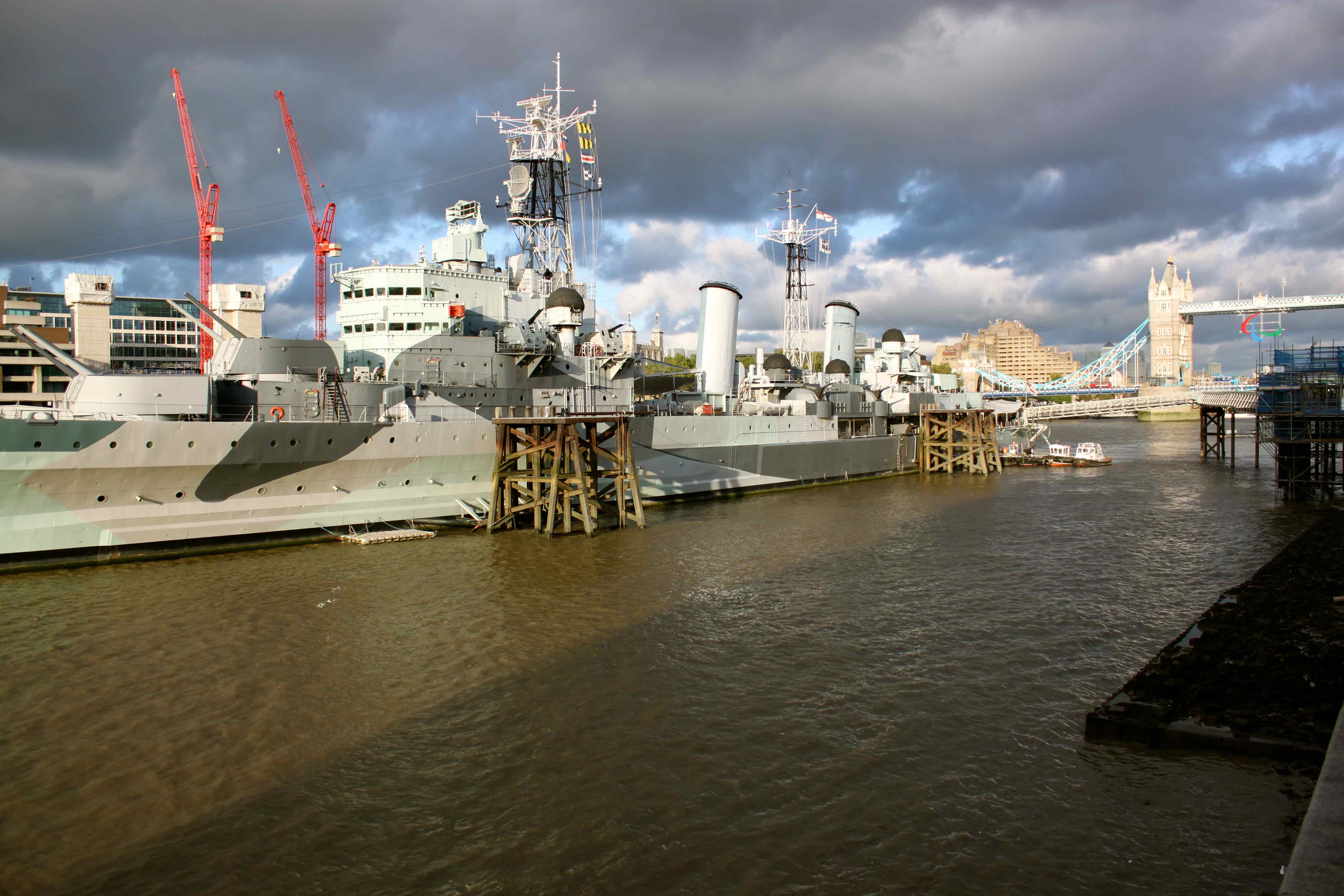 We got lucky and found a table beside the river.  The early evening sun was beautiful on HMS Belfast.