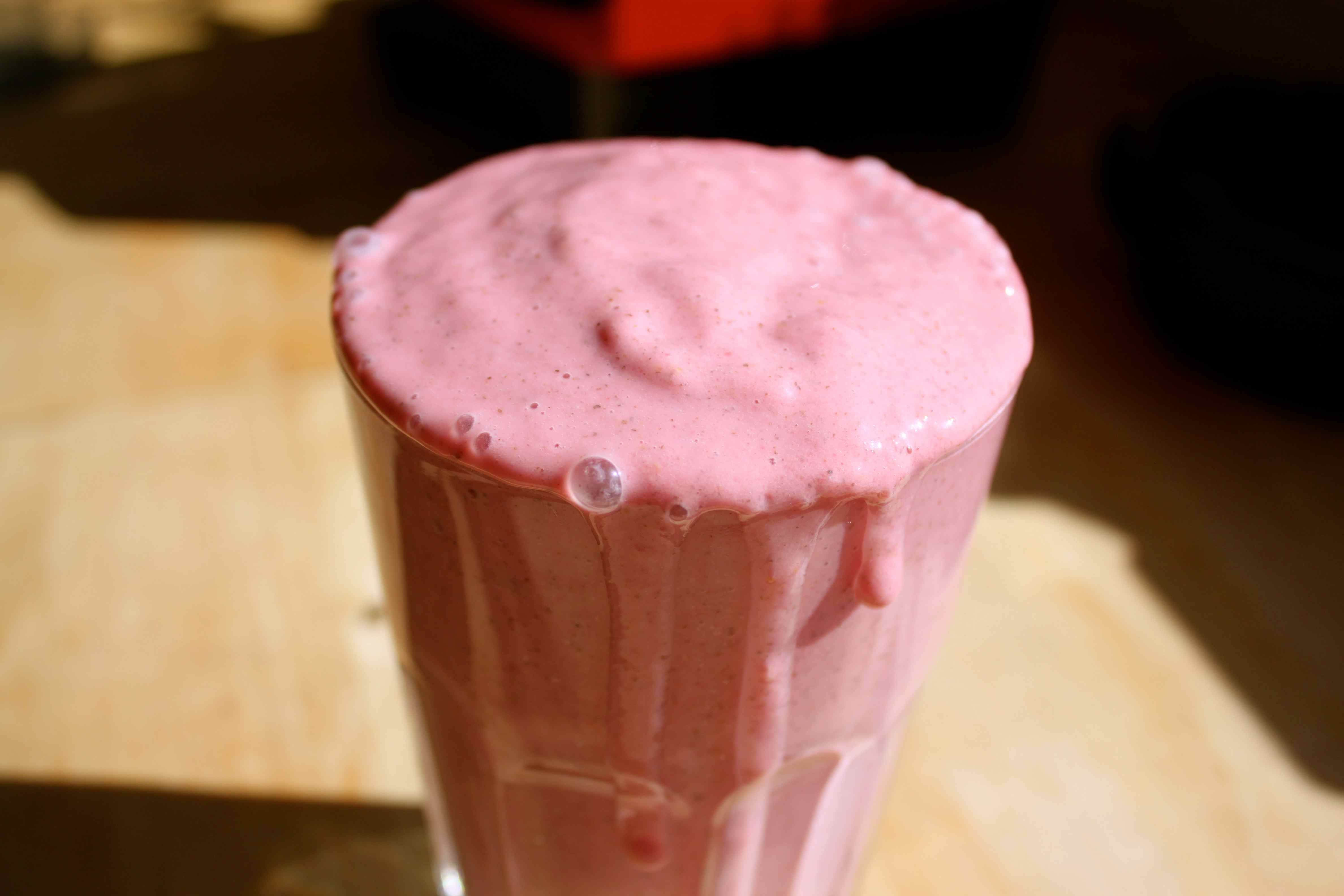 Friday! Yippee. I have missed my smoothies recently as I haven’t made one for ages so for breakfast I whizzed up a frozen banana, frozen raspberries, yogurt and almond milk.