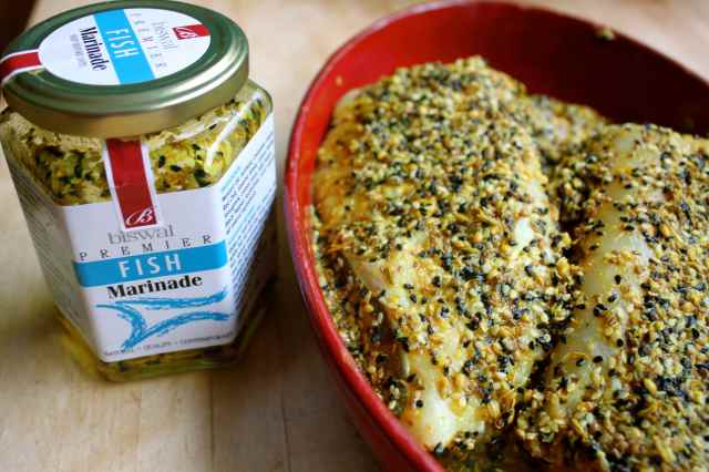 I marinaded the cod for about 6 hours and then fried it gently on a ridged pan. It was a very thick fillet so when I thought it was nearly cooked, I covered it with foil and left it to sit in the pan, with no heat for about 10 minutes. It came out perfectly.