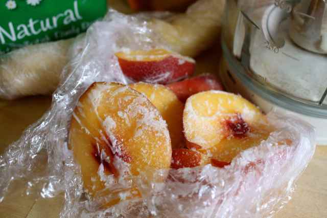 I had some nectarines which had begun to go soft so I cut out the soft/mouldy/mushy bits and froze the rest. I wanted to make a fruit soft serve which has the consistency and feel of ice-cream. All you have to do is freeze the fruit and then process in a food processor. I used my food processor rather than Vitamix/blender as it makes a more whipped and colder soft serve.