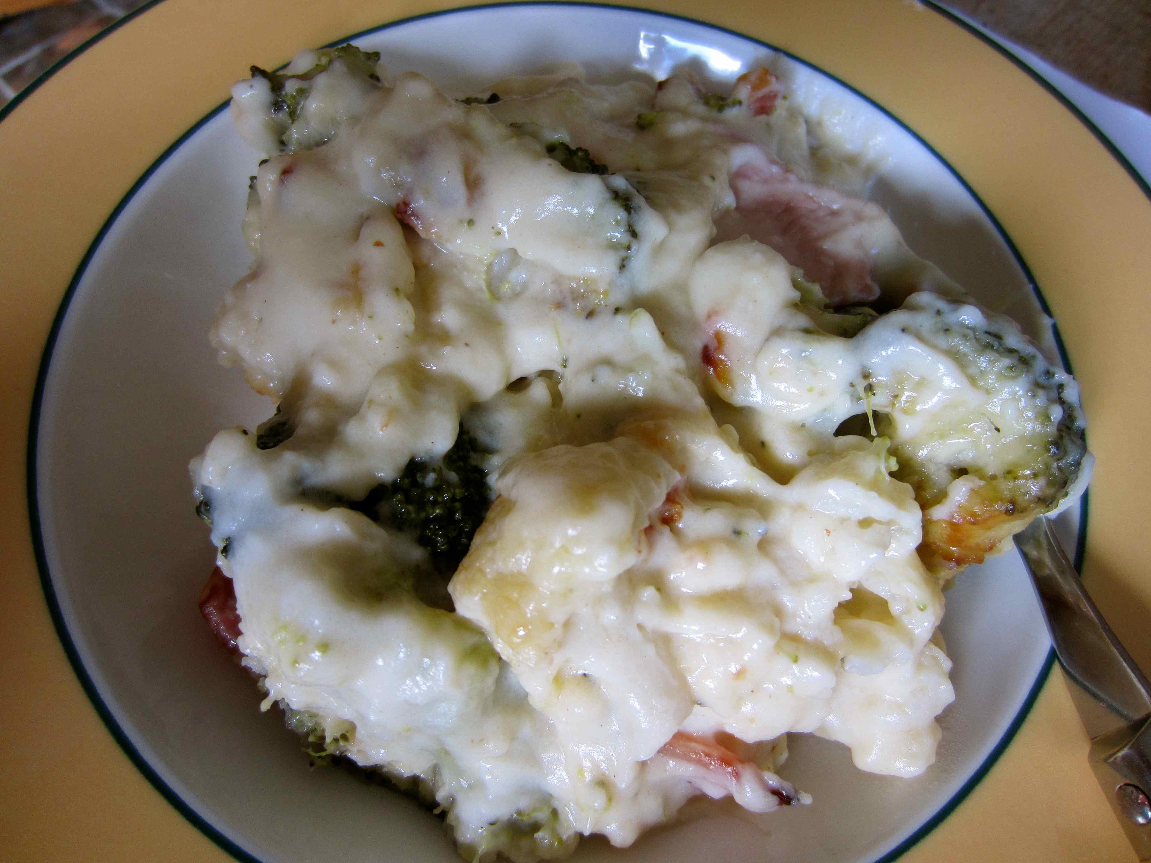 Lara made lunch for us ( I worked from home) – broccoli and cauliflower cheese with bacon.