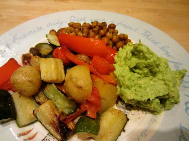 I also made a simple guacamole with lime juice and some salt and a roasted chick pea dish which was lovely.