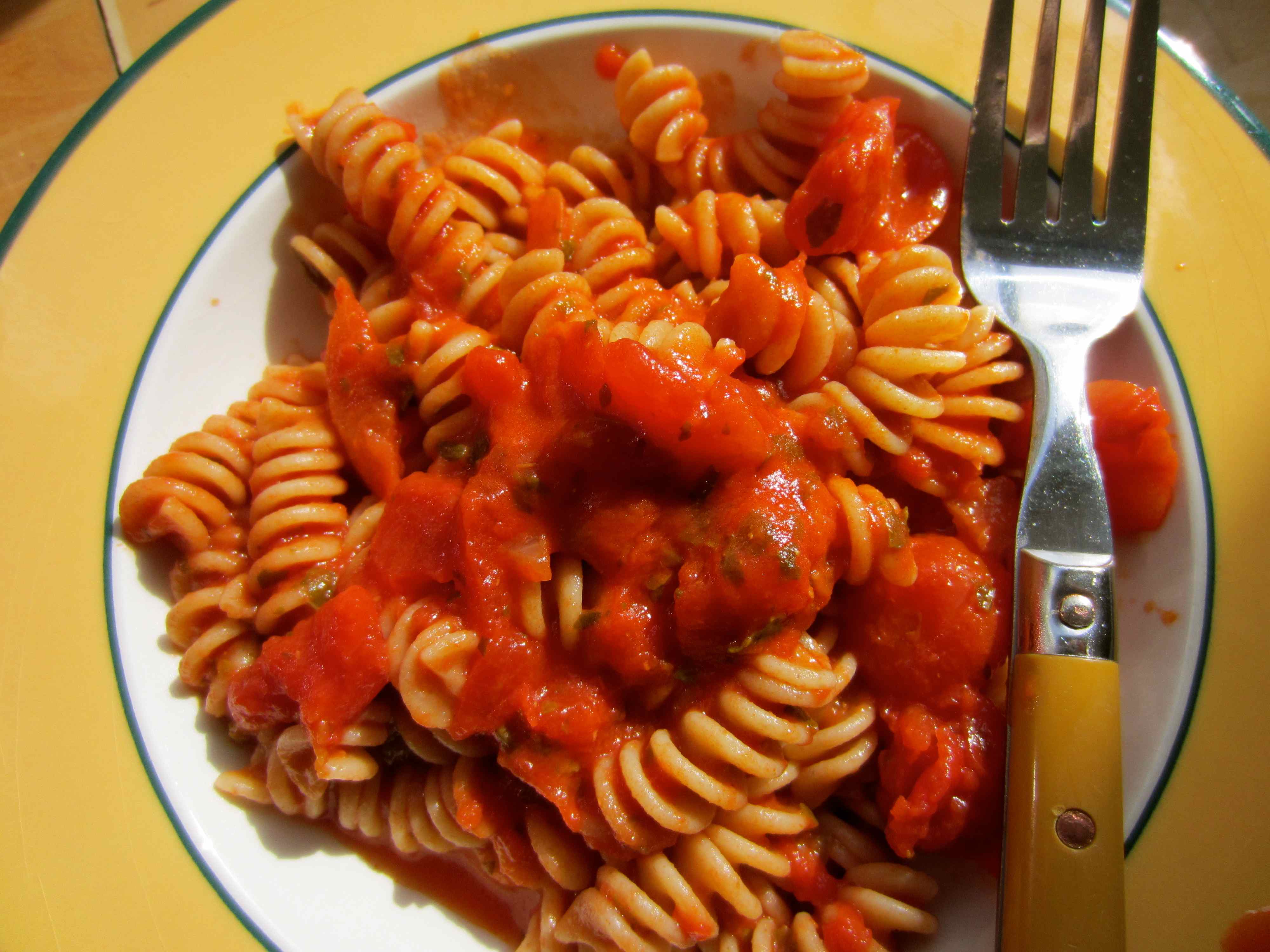 Lunch was a quick and easy bowl of wholewheat pasta with tomato sauce.