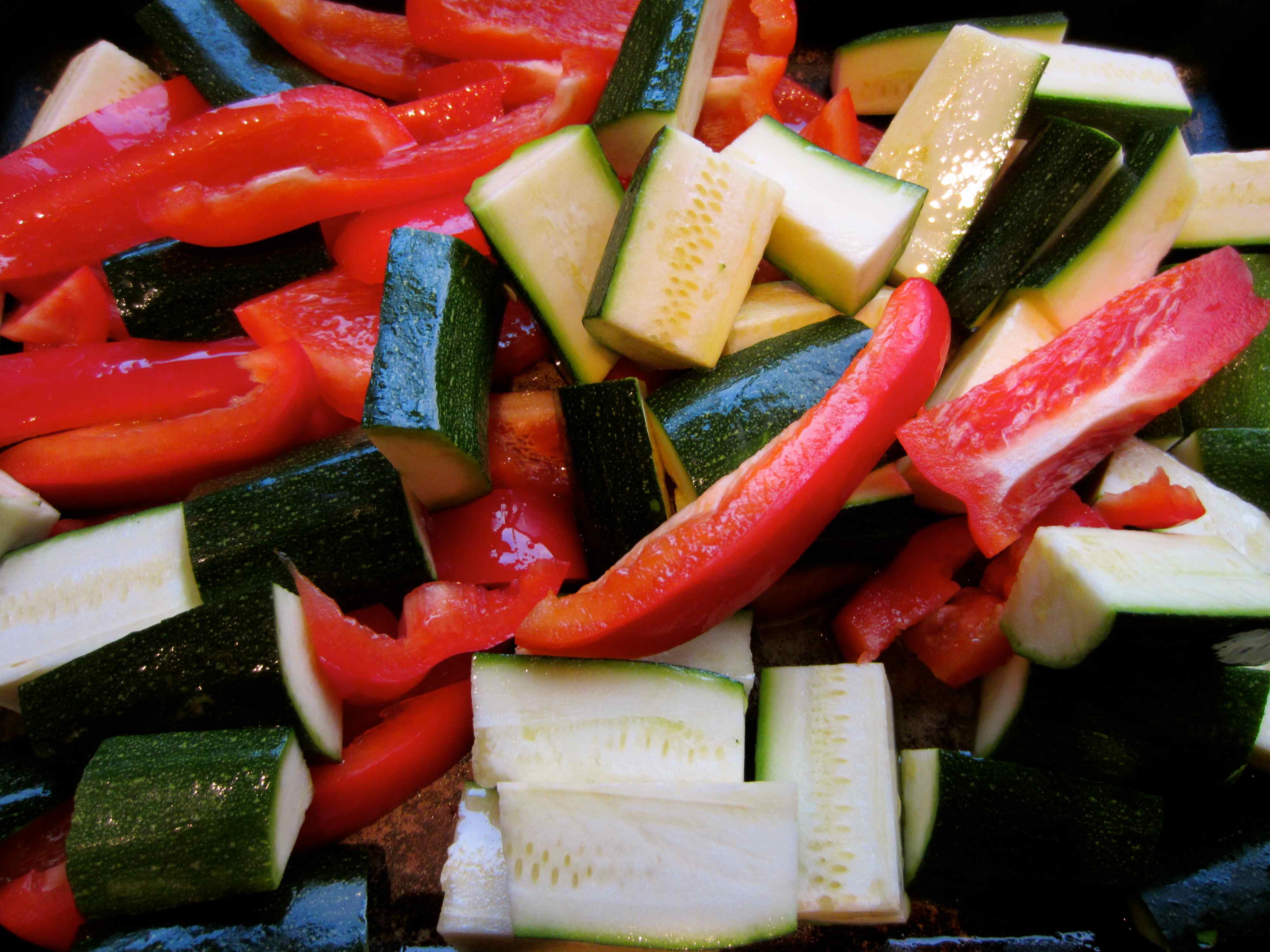 For dinner I felt a little more adventurous. A large tray of roasted vegetables, made with red peppers and courgettes,