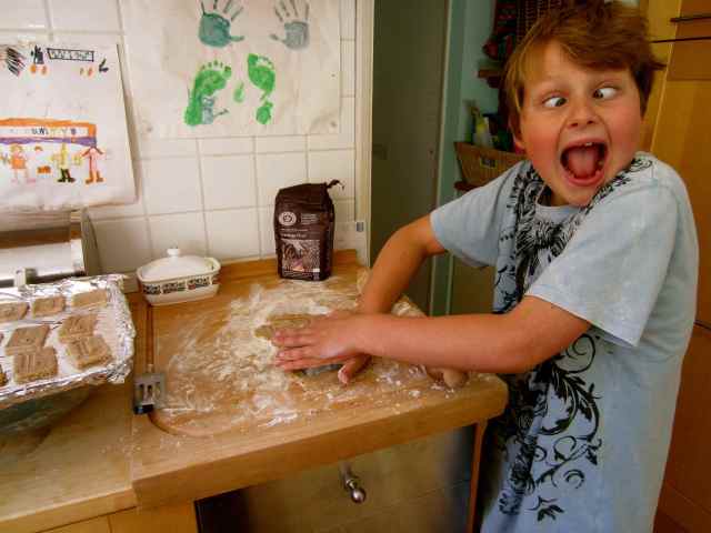 We were meeting up with lots of Harvey’s friends this afternoon at Bedgebury. Harvey was very sad when Lawrie left to go to New York earlier this year and he was really excited about seeing him today. Having got the baking bug we decided to make some biscuits to take. I had a little helper for these!