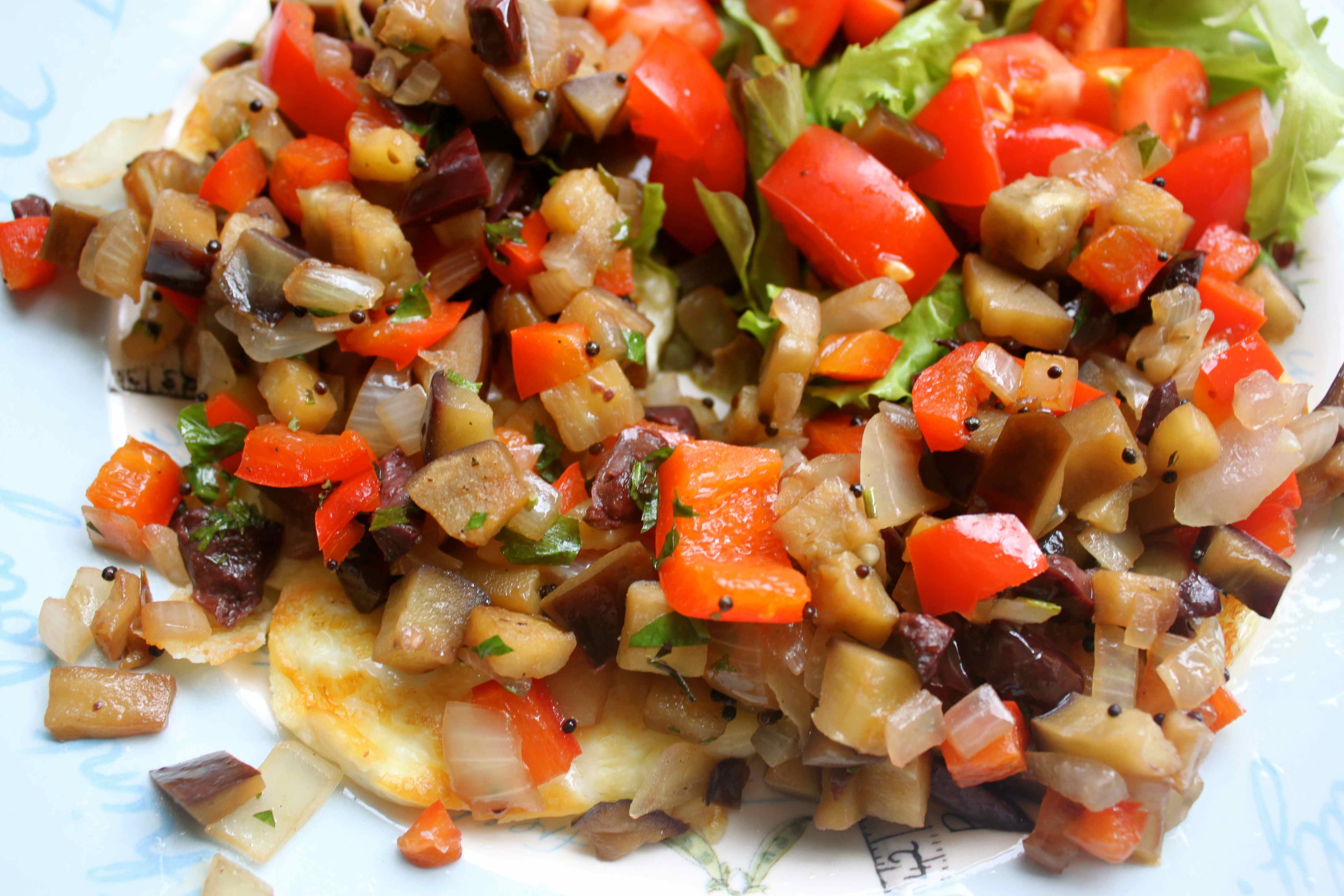 - 1 medium sized aubergine, diced
