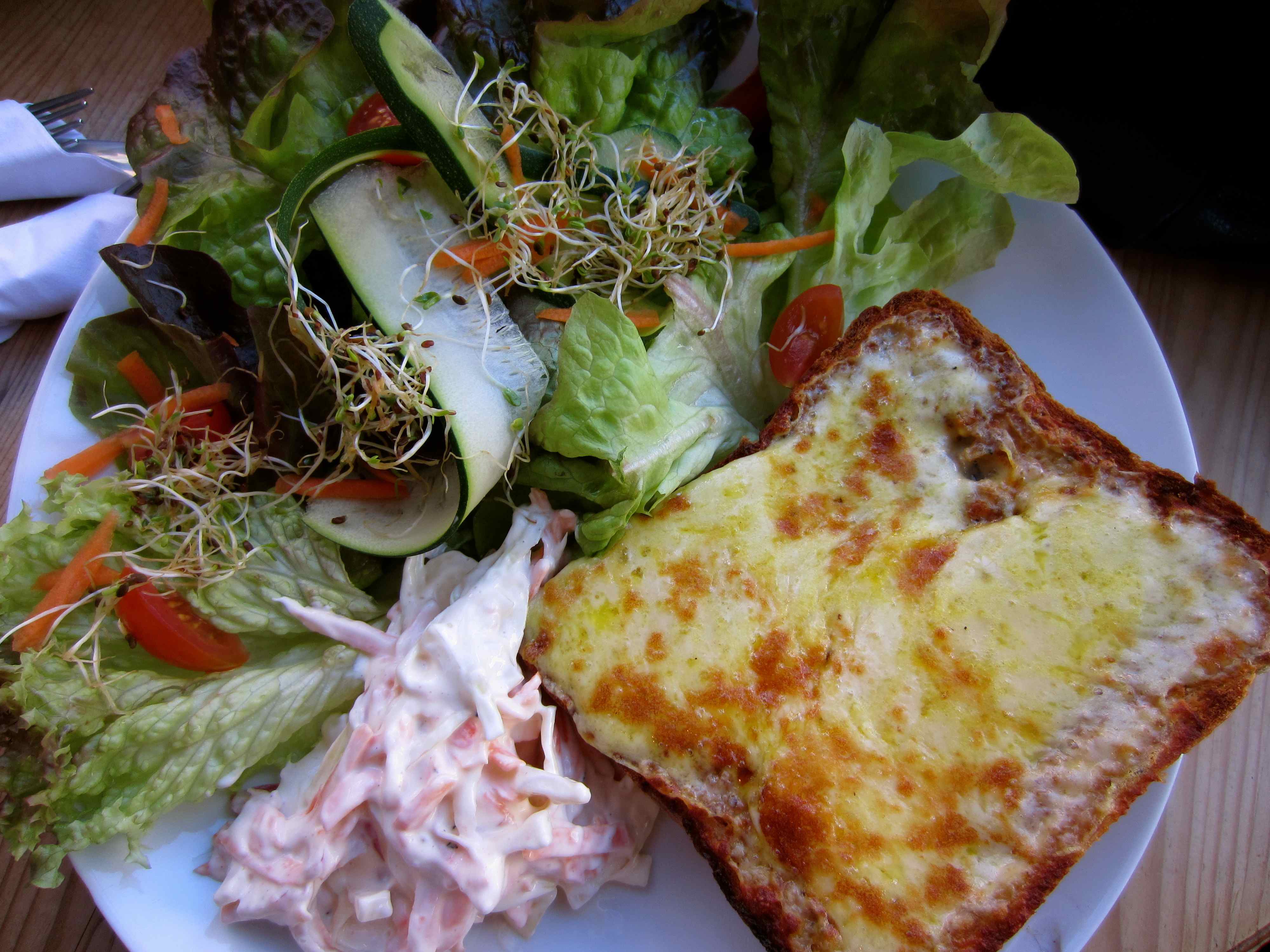Sally and I met for a coffee and then we had the Welsh Rarebit with salad and homemade coleslaw.