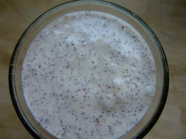 I returned from the office at lunch time today to work from home.  I was hungry mid-afternoon so I had a smoothie.  I found a frozen apricot in the freezer and blended that with an apple, blue poppy seeds, 1 tbsp Udo’s oil and Almond milk.