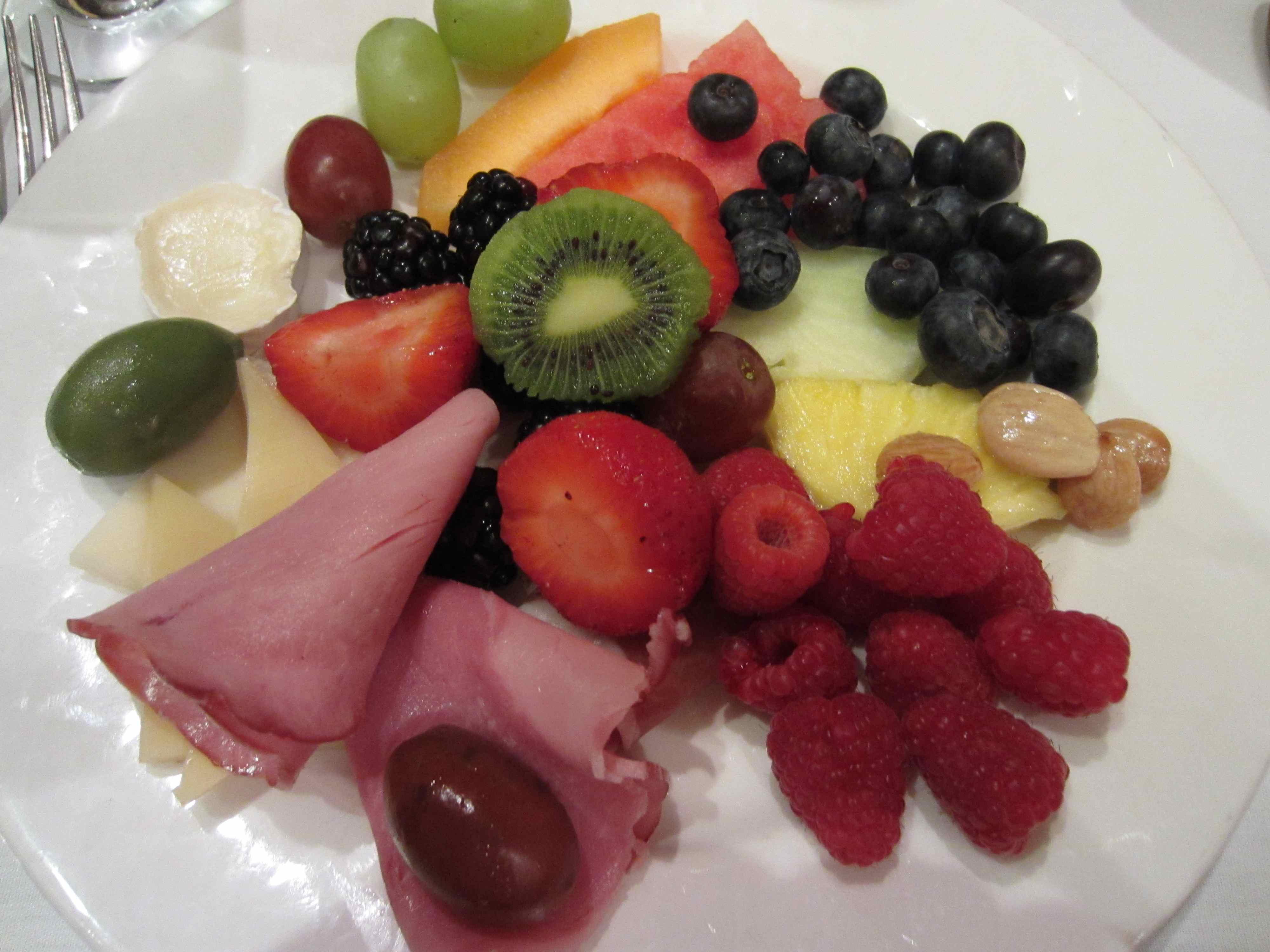 My strategy was to have a little of the cheese and ham, no carbs and stacks of fruit.