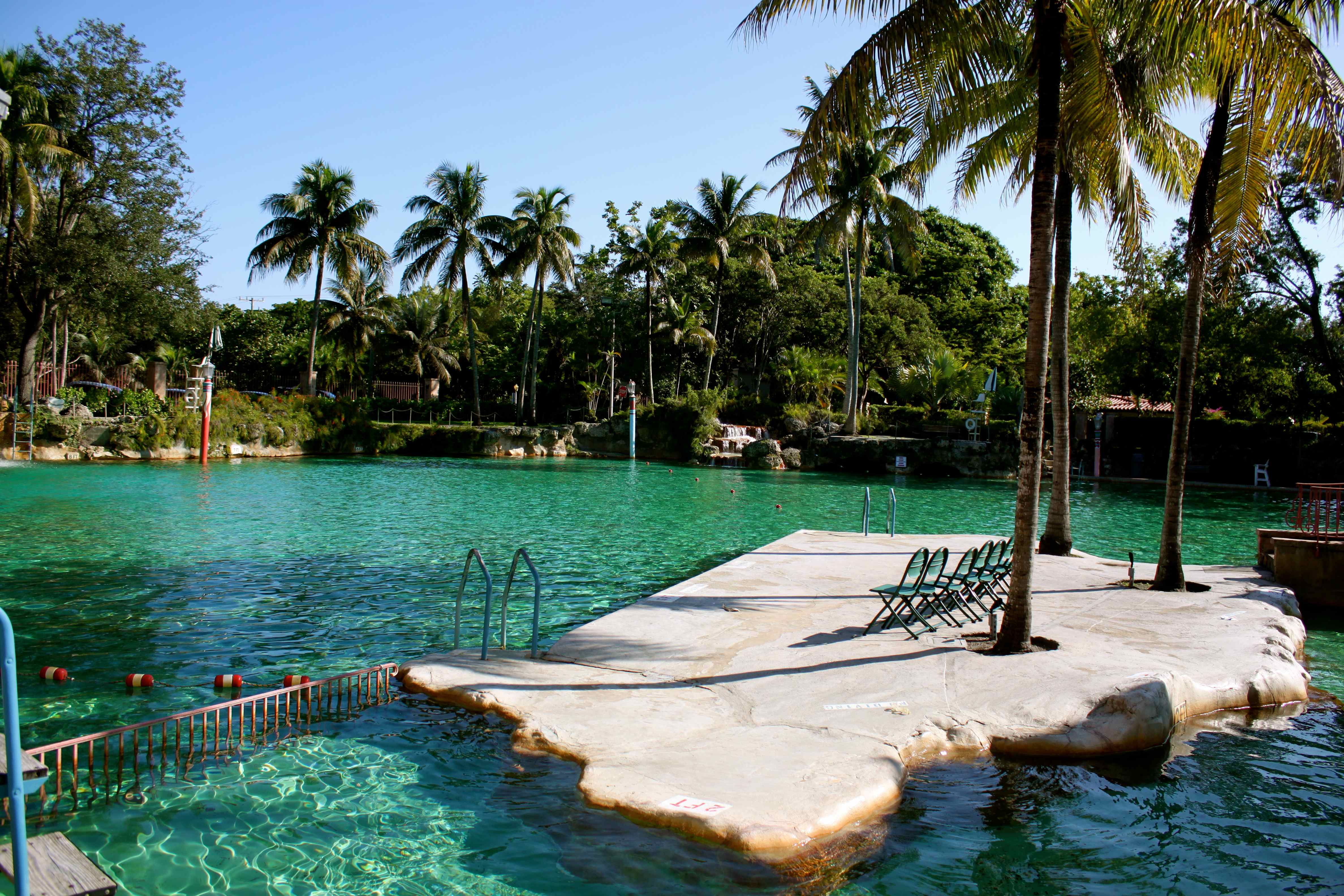 When the city of Coral Gables was built, a lot of the grand houses were made from Coral which is the bed rock of this part of Miami. When it had been quarried, it left a big ugly hole which was made in to this stunning pool. The pool is fed from a spring water so it is a lovely place to swim.