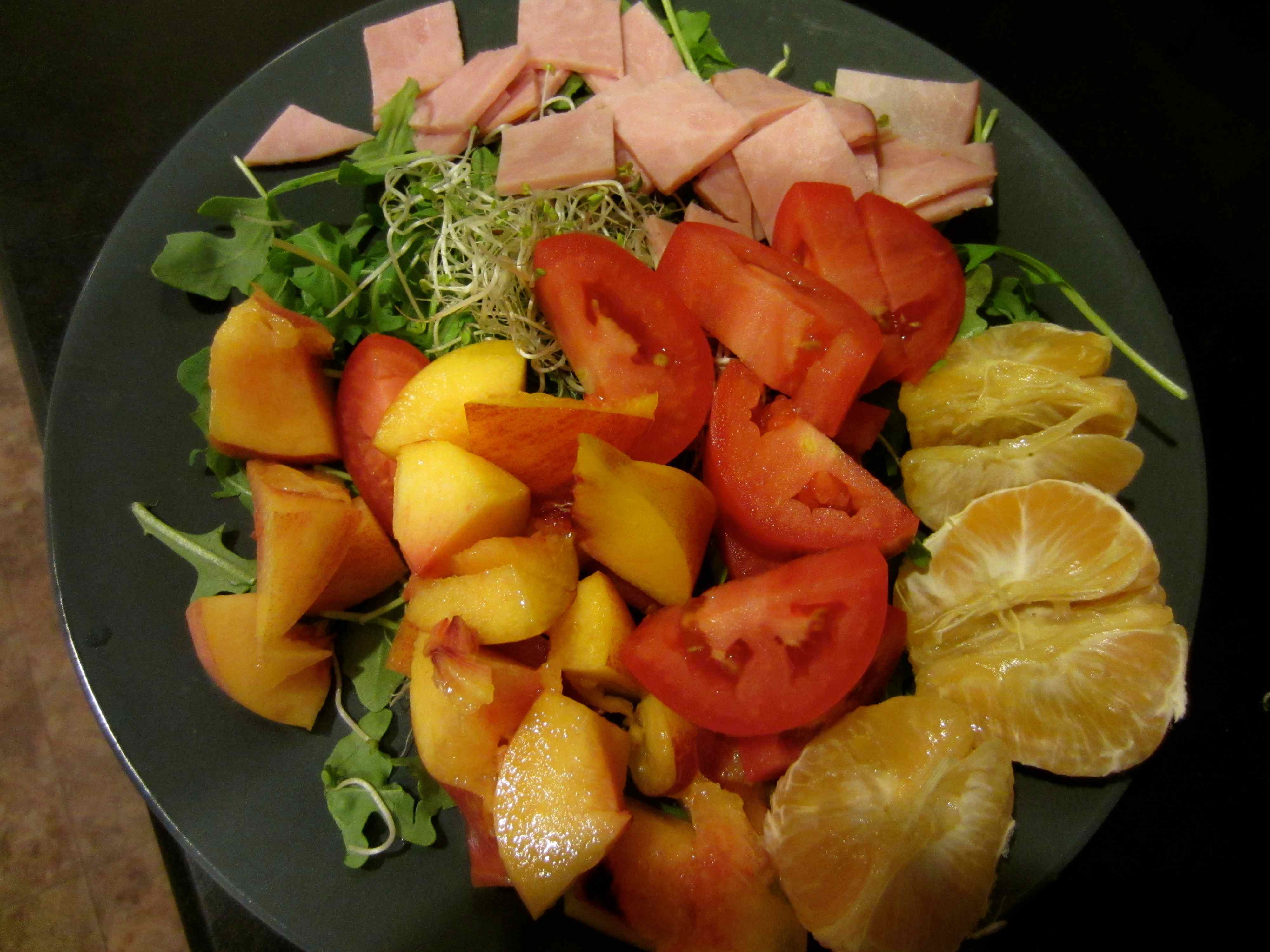 I actually enjoyed shopping for and preparing my simple supper of rocket, broccoli sprouts, tomatoes, ham, a peach and a nectarine. I would have been ok if I had stopped there but I didn’t :-(. An Oreo brownie and some crisps crossed the threshold of my lips.