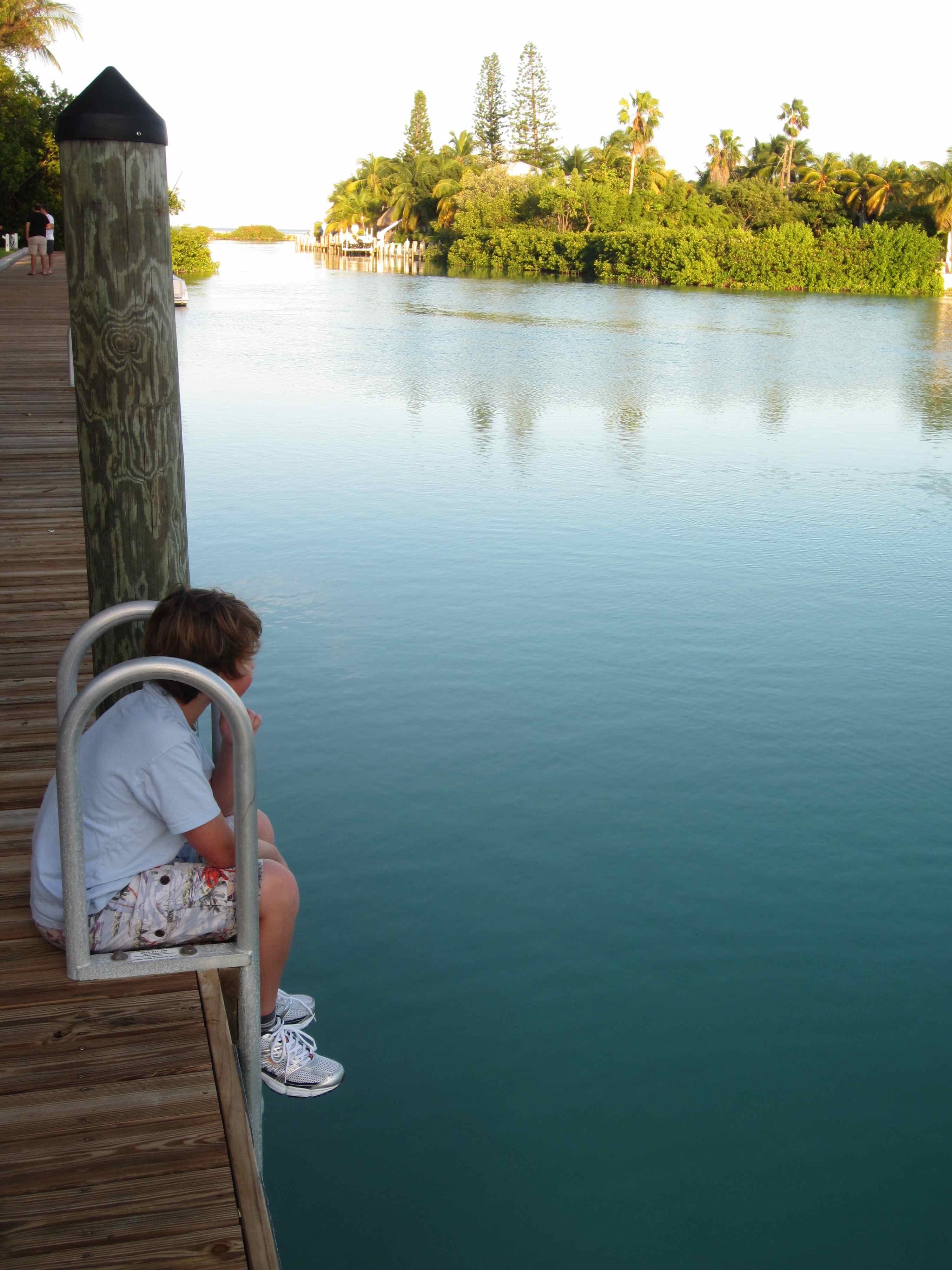 Beyond the pool is the saltwater lagoon. The recent higher than normal sea levels has enabled some fish and jellyfish to enter the lagoon so it was quite empty here today. This is usually where we sit but we re-located to the pool. Beyond the lagoon is the boat channel to allow boats in and out of the marina and beyond that Highway 1 which is a wonderful series of bridges beside Duck Key.