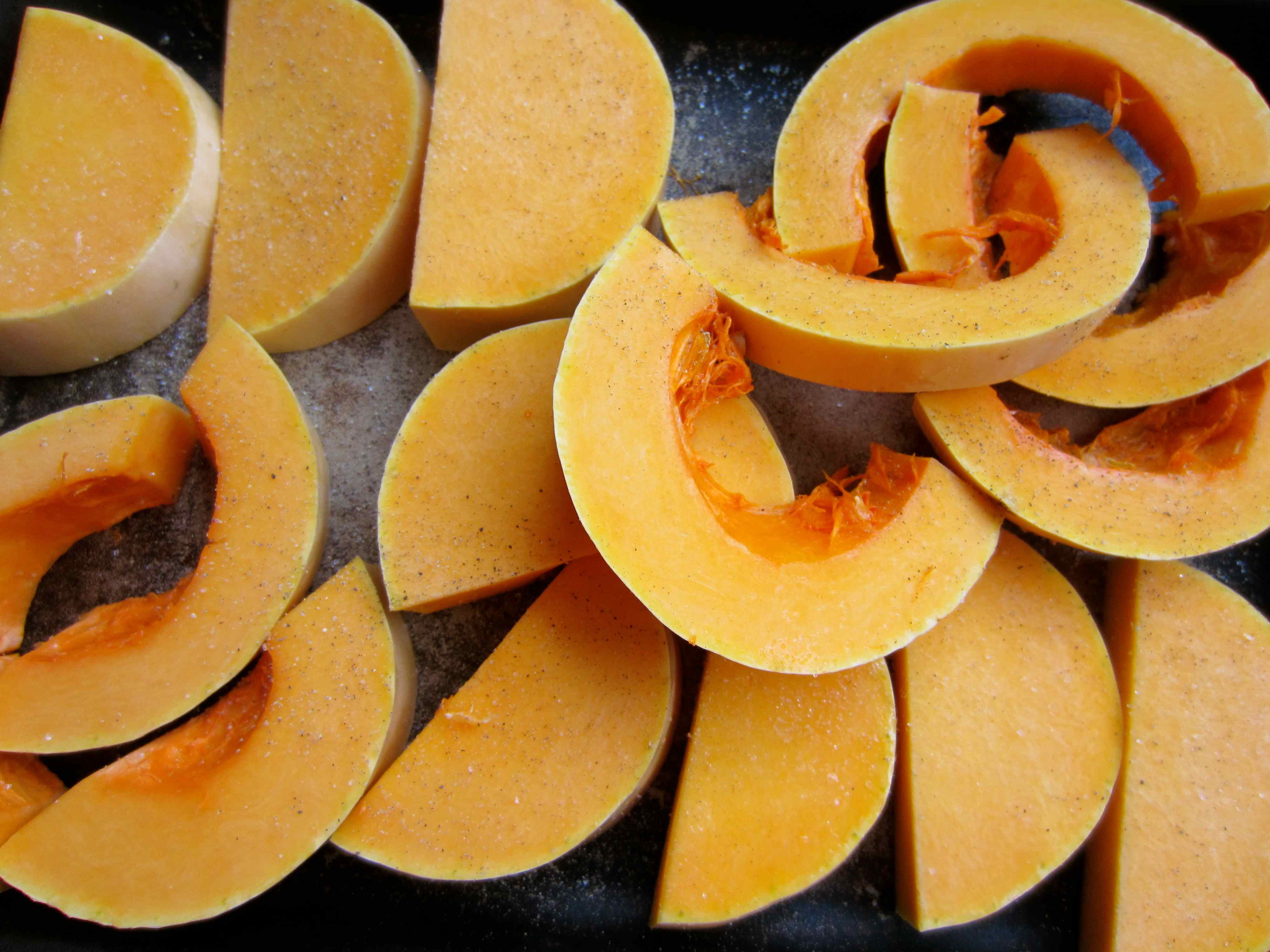 Lunch was simple. I sliced, deseeded and roasted a butternut squash in the oven. No fat added, just some salt and pepper. I covered the roasting tray with foil for about 45 minutes and then baked it some more without the foil for another 15 minutes.