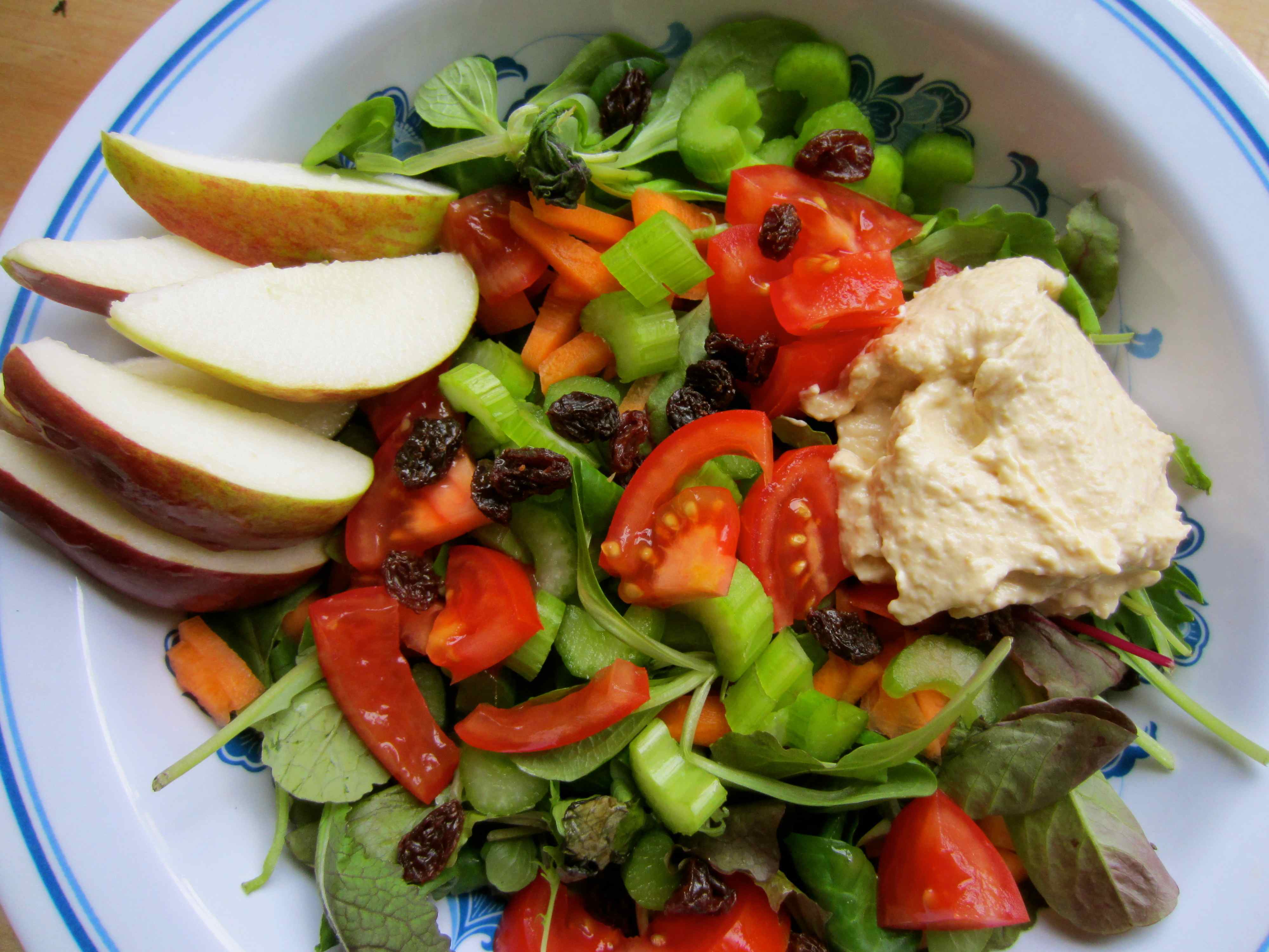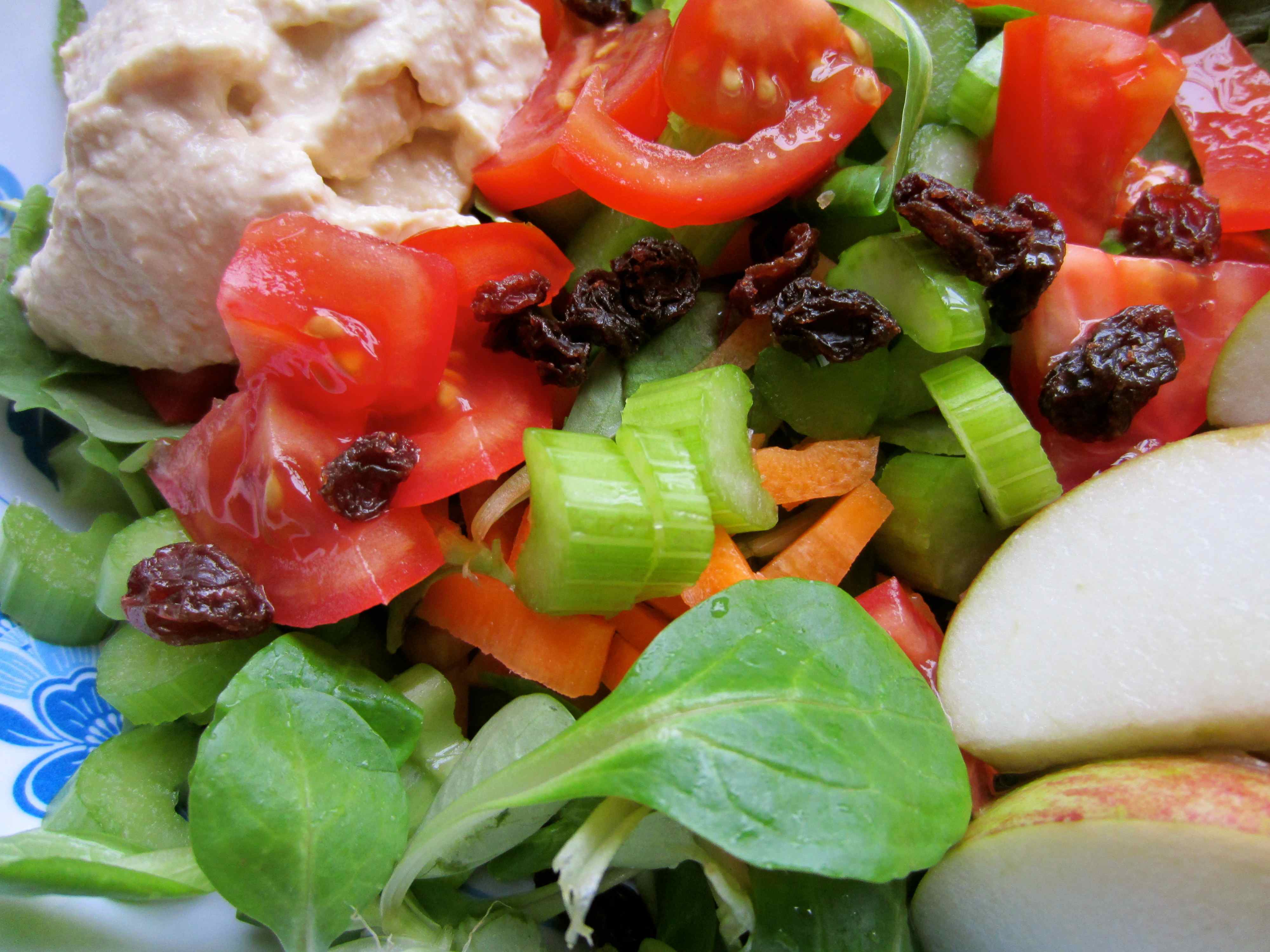 Mixed leaves, carrots, celery, tomatoes with 10 g raisins (1 point).