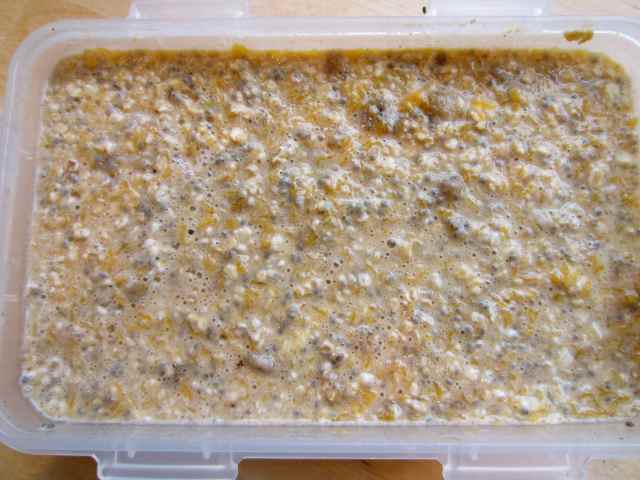 I made breakfast the night before so it was there waiting for me: 40 g oats (4 points), 300ml sugar free almond milk (2 points), 1 tbsp Chia seeds (1 point) mixed with pumpkin pie spice, mashed butternut squash and a small banana.