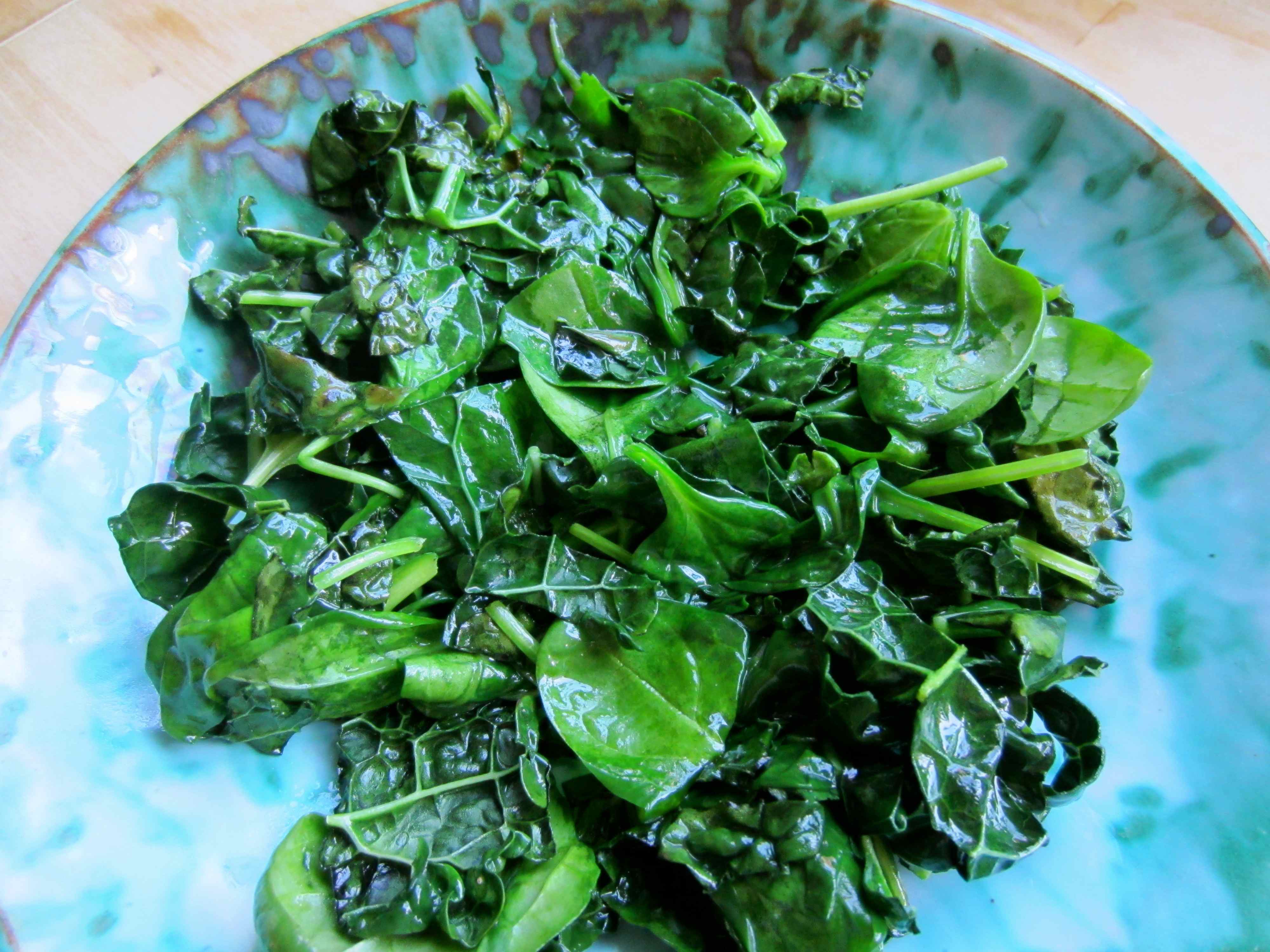 I chopped it up and lightly sauteed it in 3 tsps butter (3 points). When it was nearly cooked, I added a handful of spinach and let it just begin to wilt.