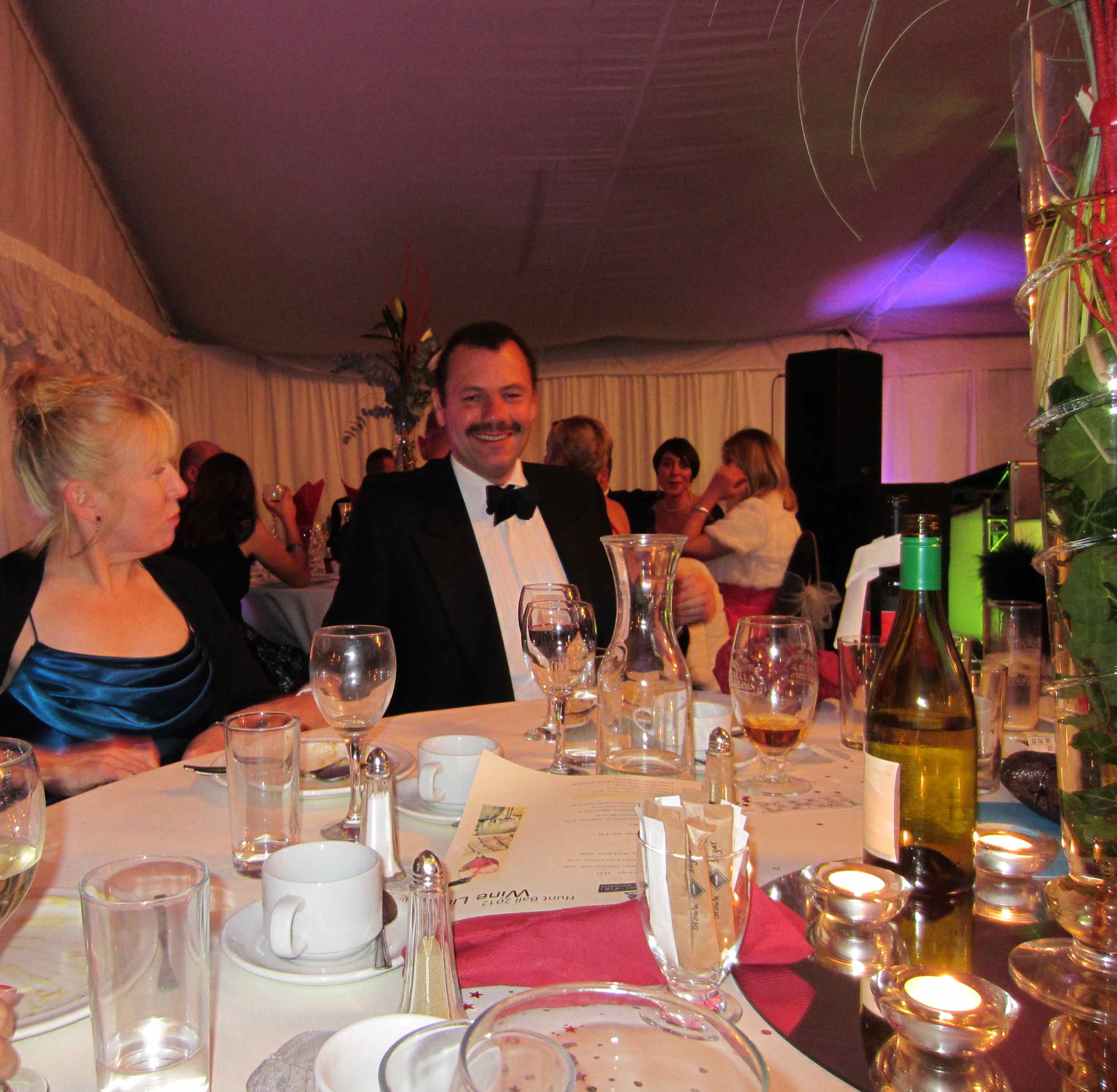 We glammed ourselves up and enjoyed some champagne before our taxi collected us to take us to the ball. Our lovely host, BJ, with friend Sue